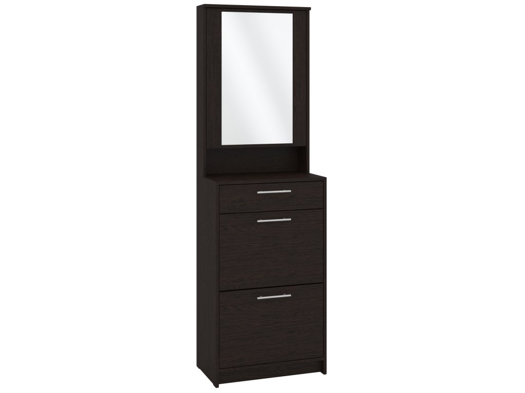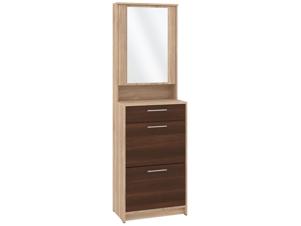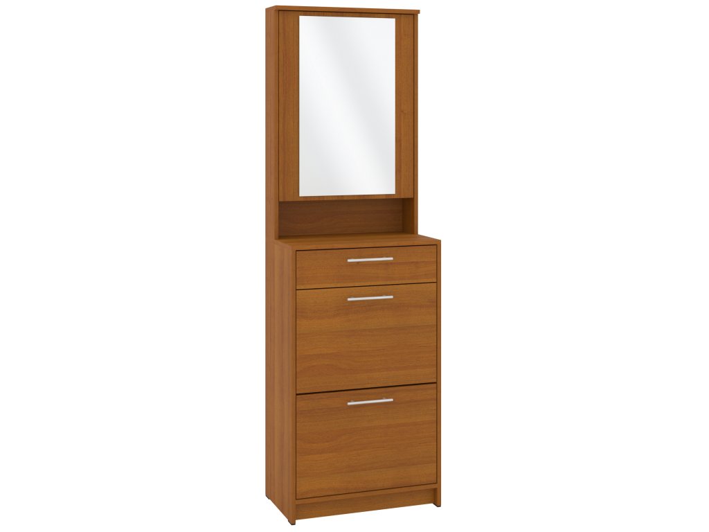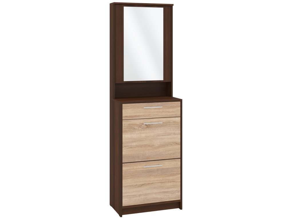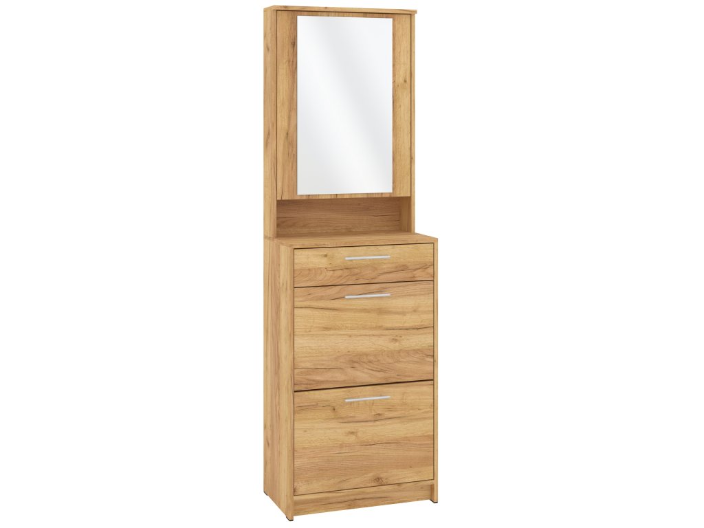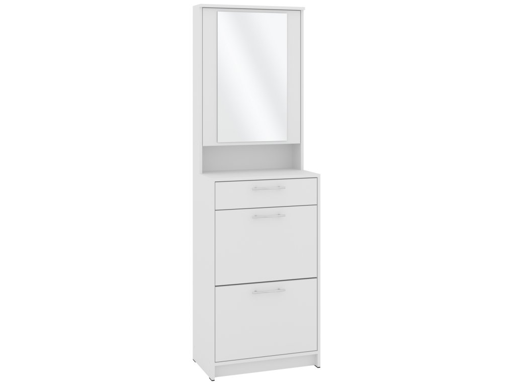 Výklopná konstrukce nabízí snadný přístup k vašim oblíbeným botám, zatímco zásuvka a skříňka s praktickým zrcadlem poskytují dostatek místa pro uložení dalších věcí, jako jsou klíče, čepice nebo rukavice. Skříňka se zrcadlem je navíc skvělým pomocníkem při poslední kontrole před odchodem z domu. Tato kombinace moderního designu a praktických funkcí dělá z tohoto botníku skvělou volbu pro každého, kdo hledá stylový a funkční nábytek do své předsíně.