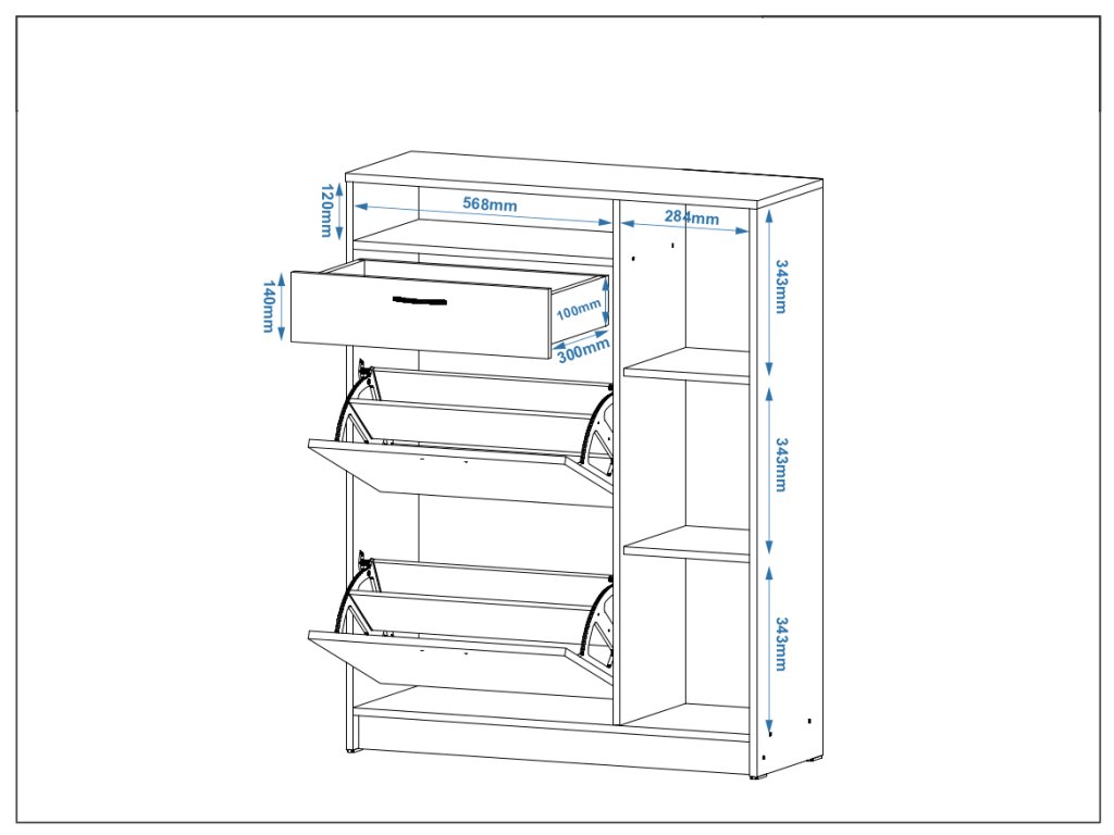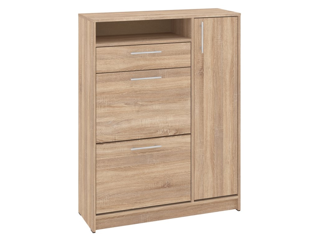 - Víceúčelovost: Díky zásuvce, skříňce a niku můžete botník využít na ukládání nejen obuvi, ale i dalších předmětů, jako jsou klíče, šály nebo čepice.
