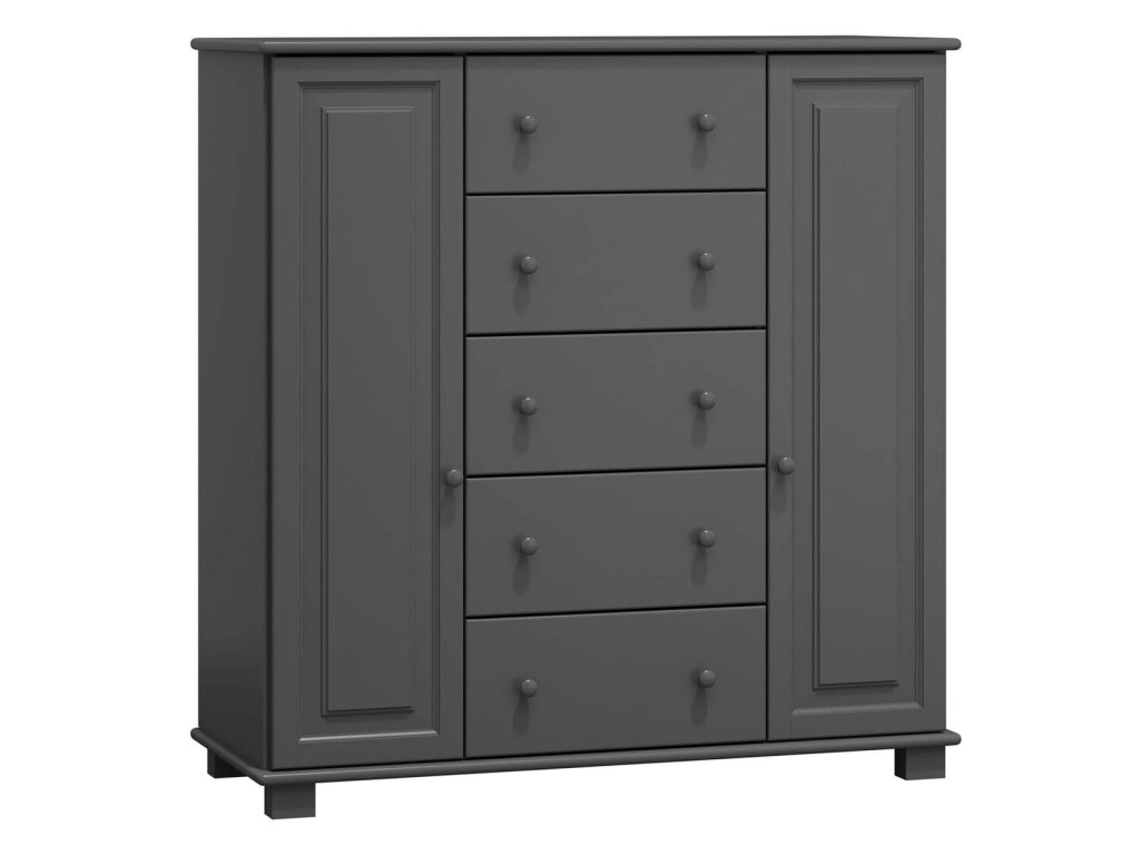 Široká nabídka barevných variant umožňuje sladění komody s jakýmkoli interiérem. Hodí se do obývacího pokoje, ložnice nebo pracovny a spojuje praktičnost s přirozenou krásou masivního dřeva.