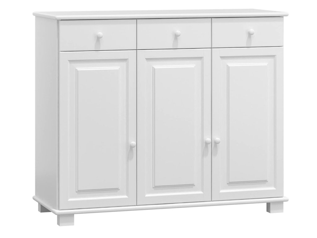 Komoda z masivu borovice CLASSIC KN-41 je dostupná v mnoha barevných variantách, takže ji snadno sladíte s ostatním nábytkem i celkovým stylem interiéru.