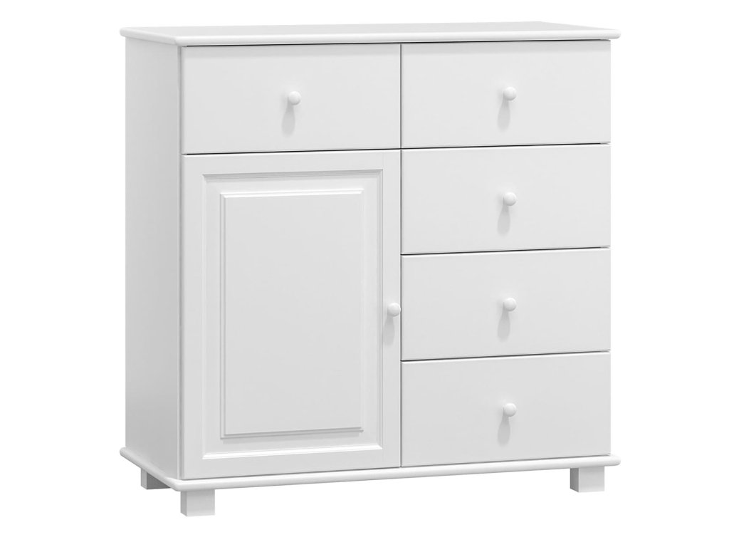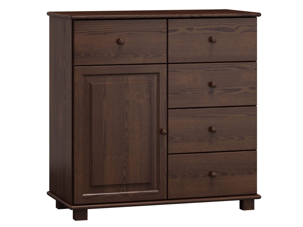 Komoda z masivu borovice je dostupná v mnoha barevných variantách, takže ji snadno sladíte s moderním i klasickým interiérem. Díky variabilním rozměrům se přizpůsobí jak menším, tak prostornějším místnostem.