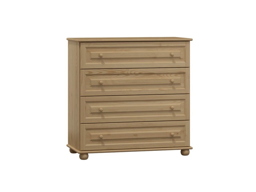 Komoda disponuje čtyřmi prostornými zásuvkami, které nabízejí dostatek úložného prostoru pro oblečení, dokumenty i drobnosti denní potřeby. Hladký chod zásuvek zajišťuje komfortní a tiché používání. Díky univerzálním rozměrům se hodí do ložnice, obývacího pokoje, pracovny i předsíně.