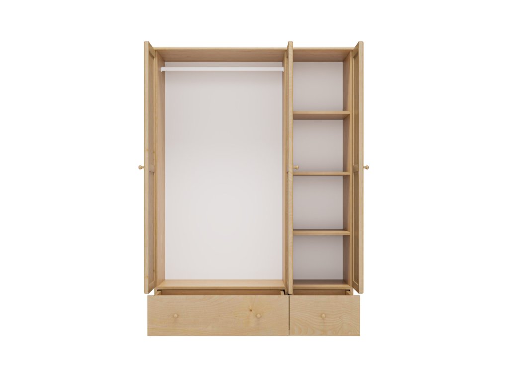 Tato šatní skříň není jen praktickým řešením pro ukládání věcí, ale je i investicí do kvality a dlouhodobé spokojenosti – z masivu prvotřídní jakosti, který vydrží generace a zároveň zachovává krásný přírodní vzhled.