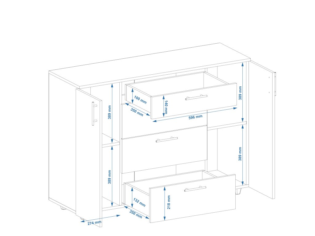 - Kombinace úložného prostoru – Zásuvky i dvířka umožňují snadné uspořádání a přehledné uskladnění věcí.