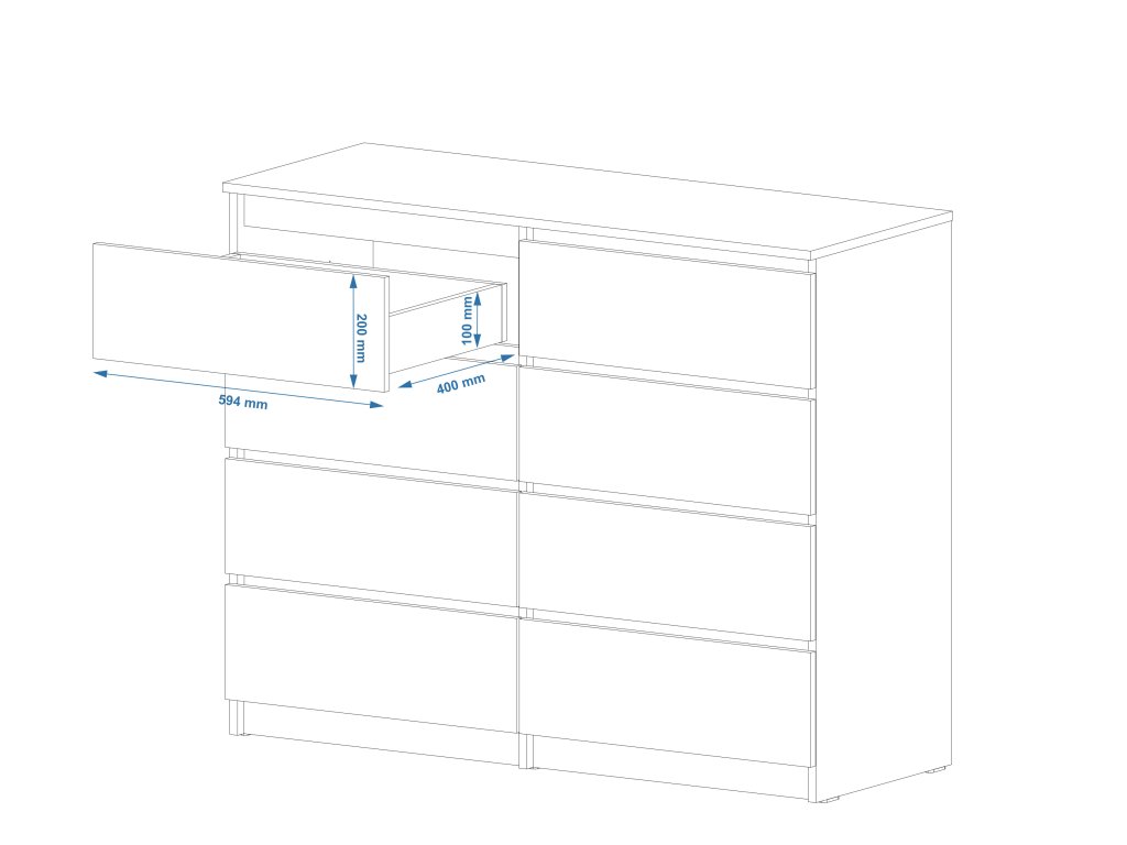 Zásuvková komoda NEW SYSTEM-8 – ideální volba pro každý interiér. Zásuvková komoda NEW SYSTEM-8 je dokonalým spojením praktičnosti a moderního designu. S osmi prostornými zásuvkami nabízí dostatek úložného prostoru pro všechny vaše věci, od oblečení po osobní potřeby. Komoda je vyrobena z kvalitních materiálů, což zajišťuje její dlouhou životnost a odolnost.