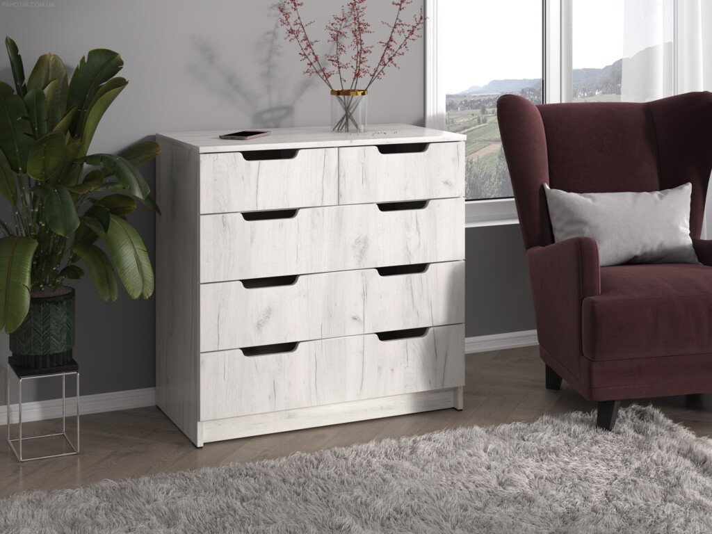 - Snadná montáž – Komoda je snadno sestavitelná, což usnadňuje její instalaci i v domácnosti.