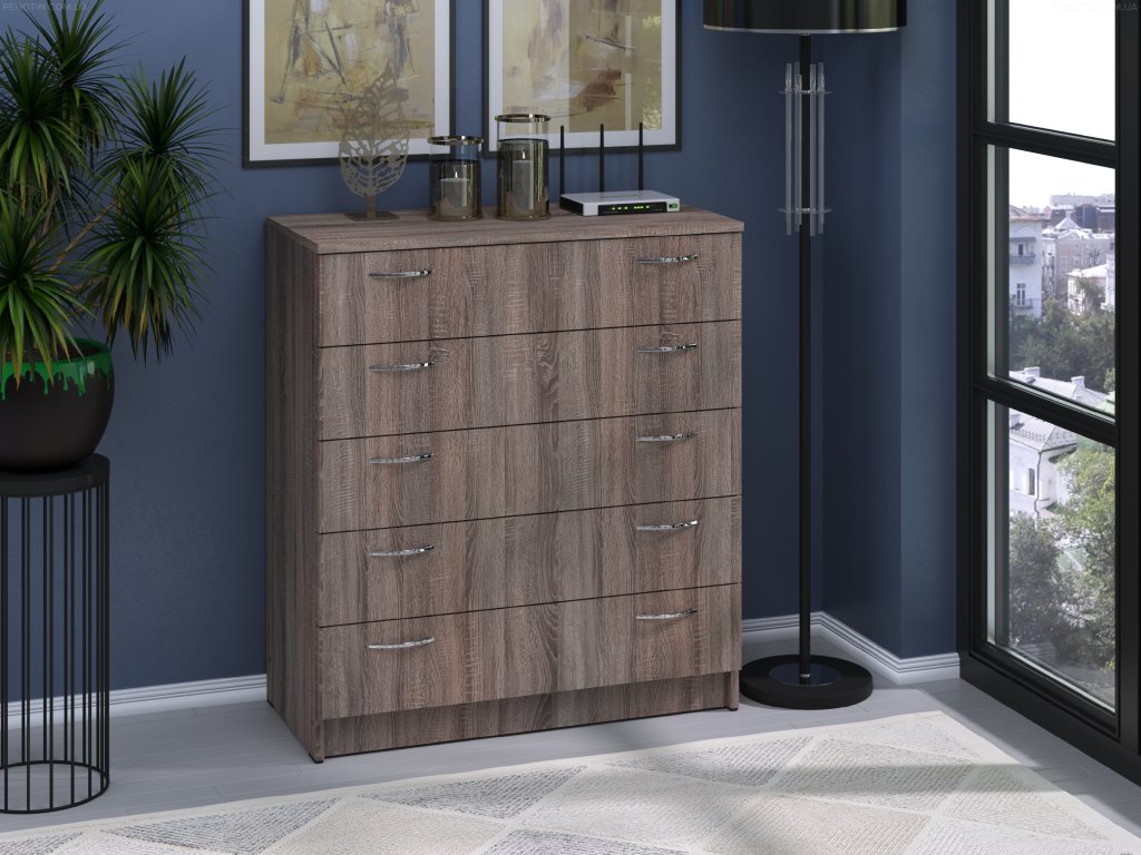 Komoda K-5 je elegantní a praktický kus nábytku, který nabízí dostatek úložného prostoru díky pěti prostorným zásuvkám. Je ideální pro organizaci a uložení vašich věcí v obývacím pokoji, ložnici nebo kanceláři.