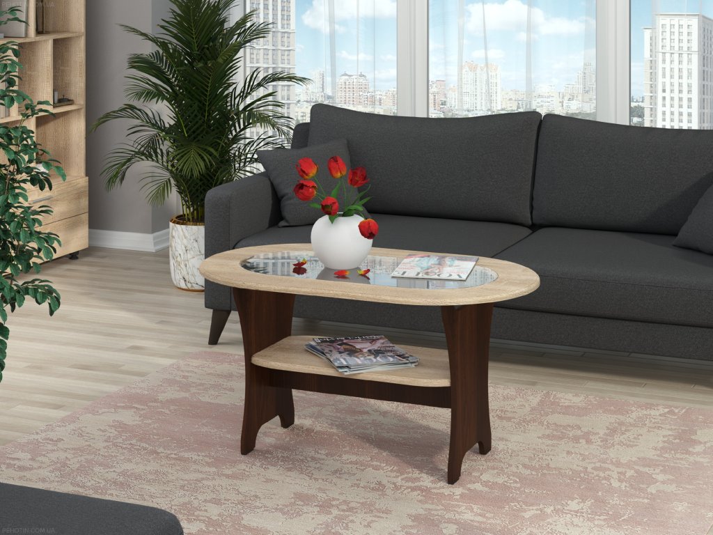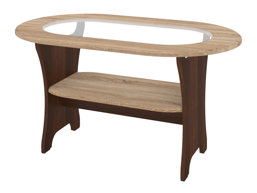 Designový konferenční stolek MELISA MDF s policí a skleněnou deskou – Okrášlete svůj interiér!. Stylový konferenční stolek MELISA z kvalitní MDF desky je dokonalým doplňkem pro moderní interiéry. Tento oválný stůl s elegantní skleněnou deskou a praktickou policí poskytuje nejen vizuální přitažlivost, ale také maximální funkčnost. S jeho pečlivým designem a univerzálním rozměrem 100 cm na délku, 60 cm na hloubku a 52 cm na výšku se hodí do každého obývacího pokoje či kanceláře.