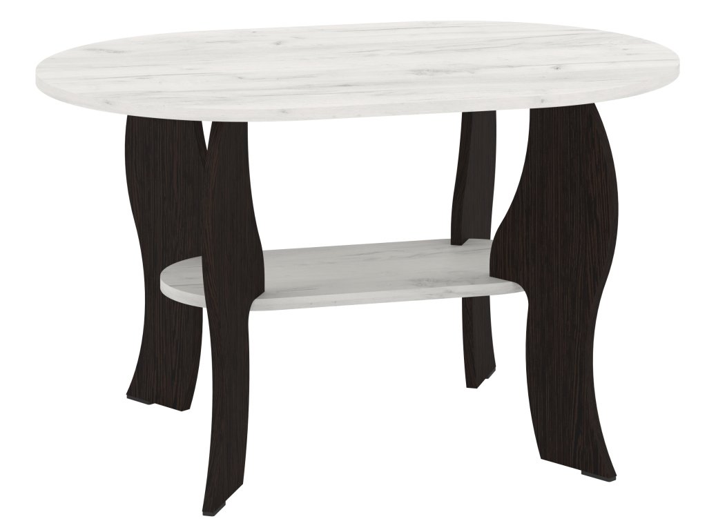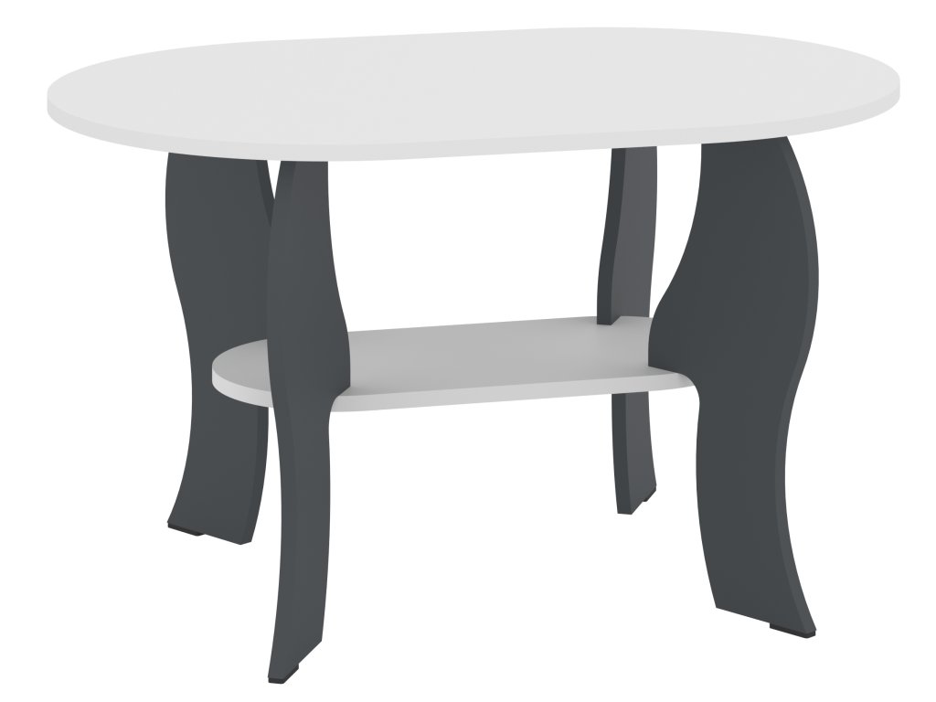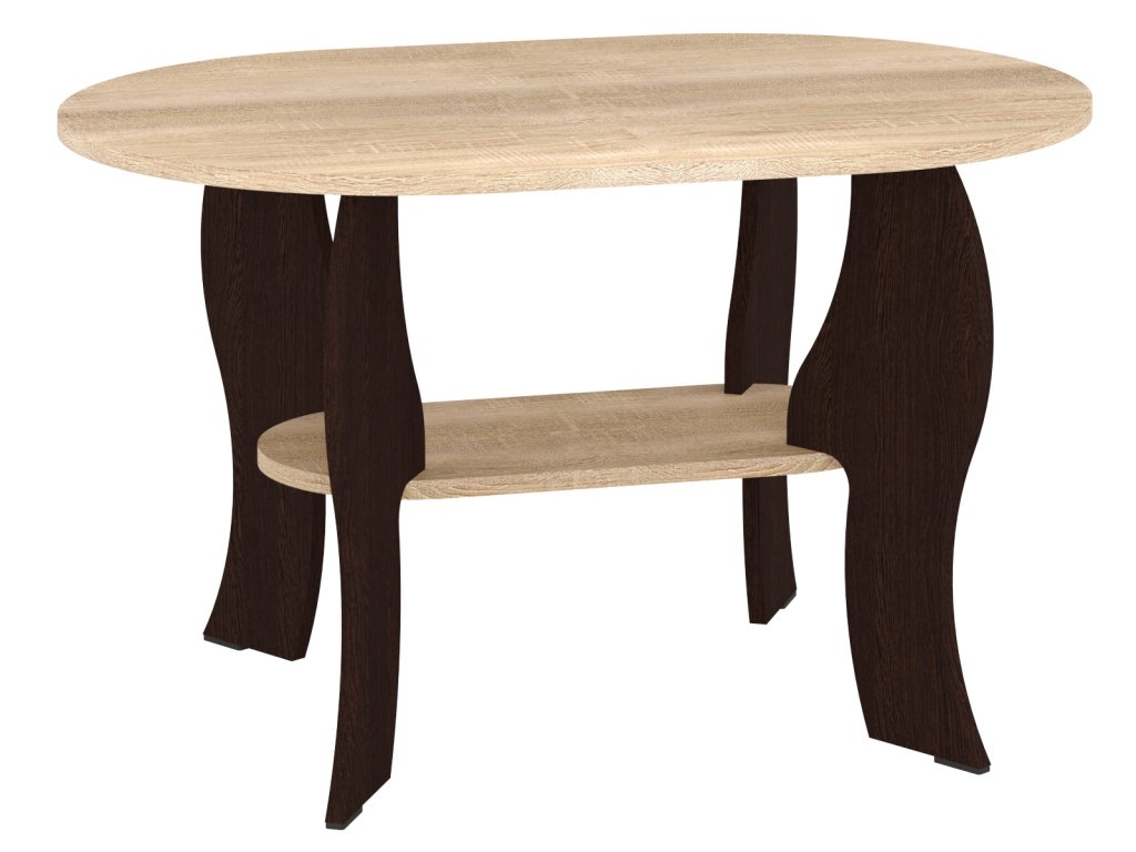 Elegantní oválný konferenční stolek SONATA s policí – Moderní design pro váš interiér. Konferenční stolek SONATA v oválném tvaru je ideální volbou pro ty, kteří hledají elegantní a praktický nábytek do svého obývacího pokoje. Tento stolek se vyznačuje moderním a nadčasovým designem, který dokonale zapadne do každého interiéru. Vyrobený z kvalitních materiálů, nabízí nejen styl, ale i dostatek úložného prostoru díky praktické poličce. Rozměry stolu (hloubka 60 cm, délka 90 cm, výška 52 cm) jsou ideální pro pohodlné používání, a zároveň nezaberou příliš místa.