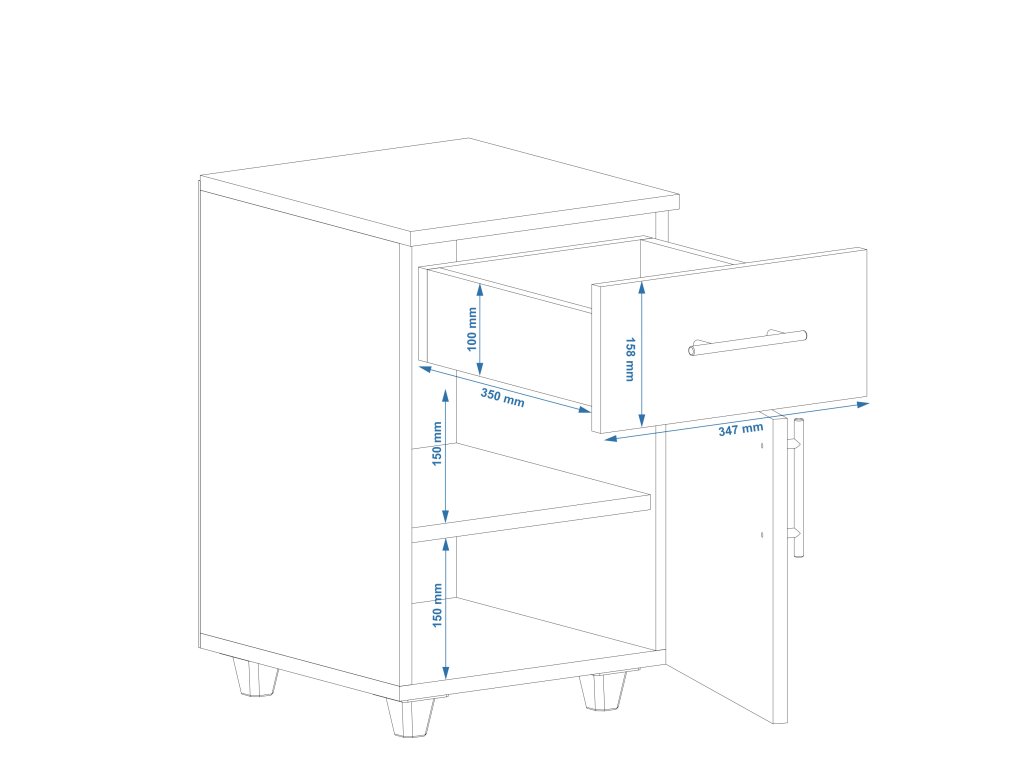 - Praktický úložný prostor: Kombinace dvířek a zásuvky poskytuje dostatek místa pro vše, co potřebujete mít po ruce – od knih až po osobní věci.