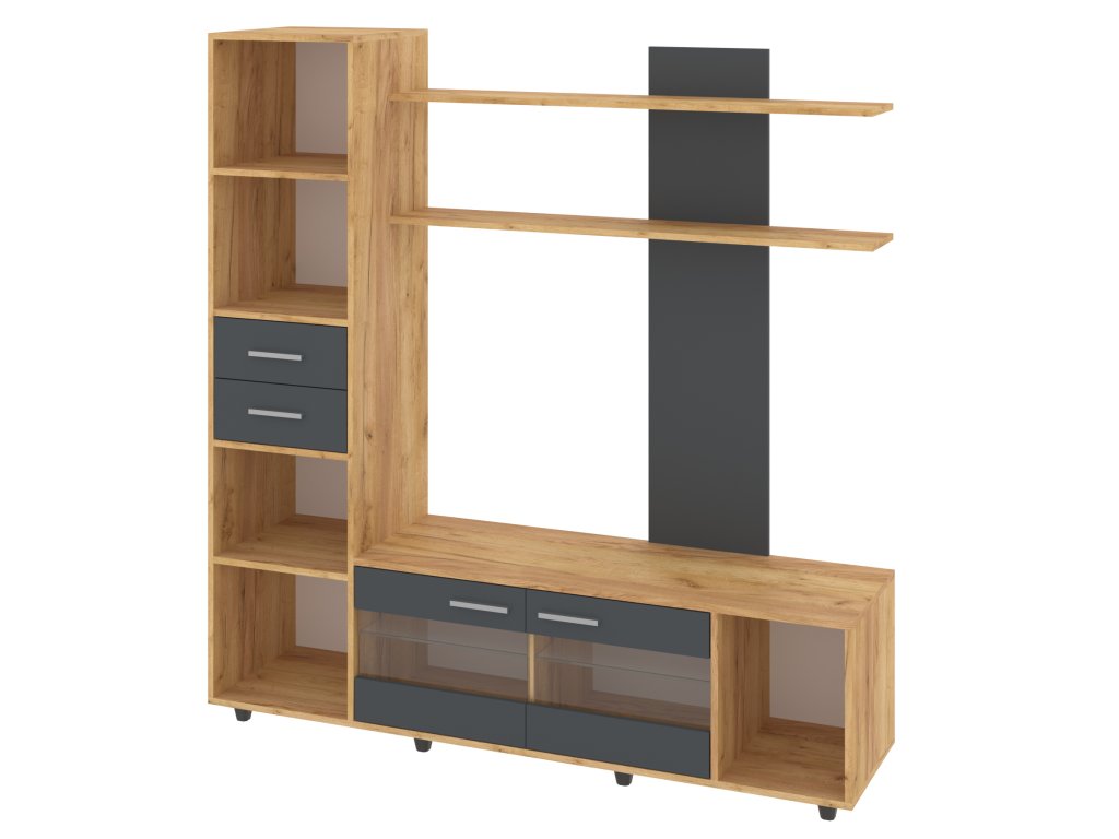 - Moderní design – Stěna kombinuje čisté linie a kvalitní materiály, které zajistí, že bude vypadat skvěle ve vašem obývacím pokoji po dlouhá léta.