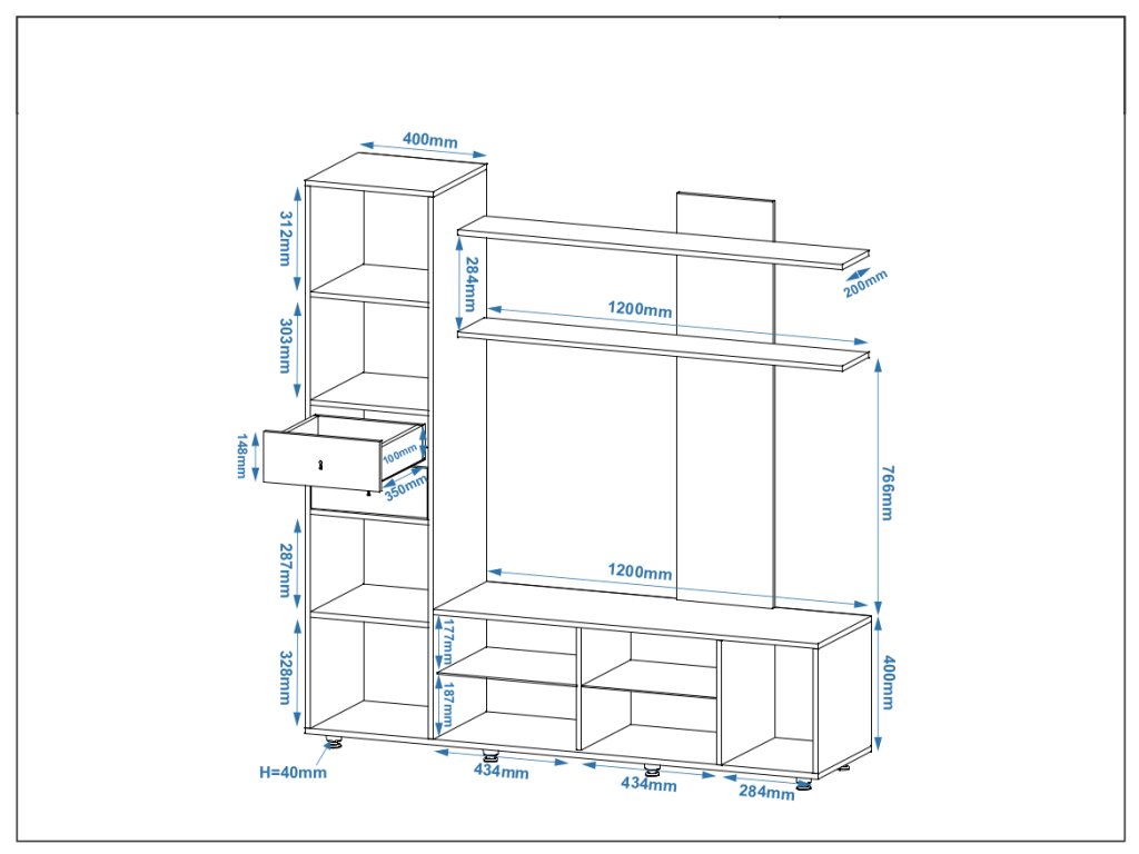- Praktický úložný prostor – Skříňky a police nabízejí dostatek místa na uložení knih, elektroniky či dekorací.
