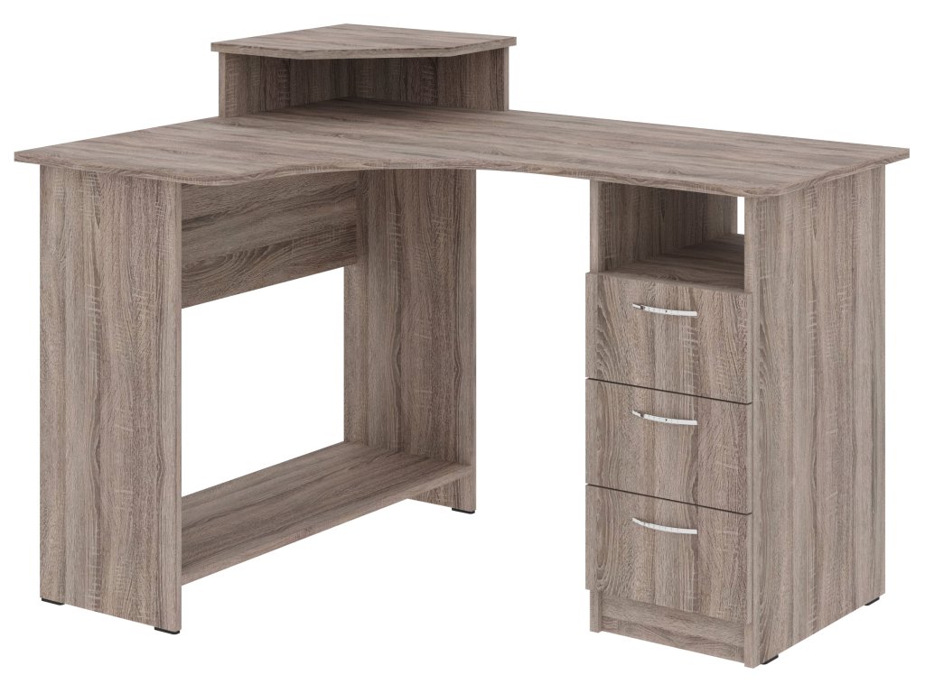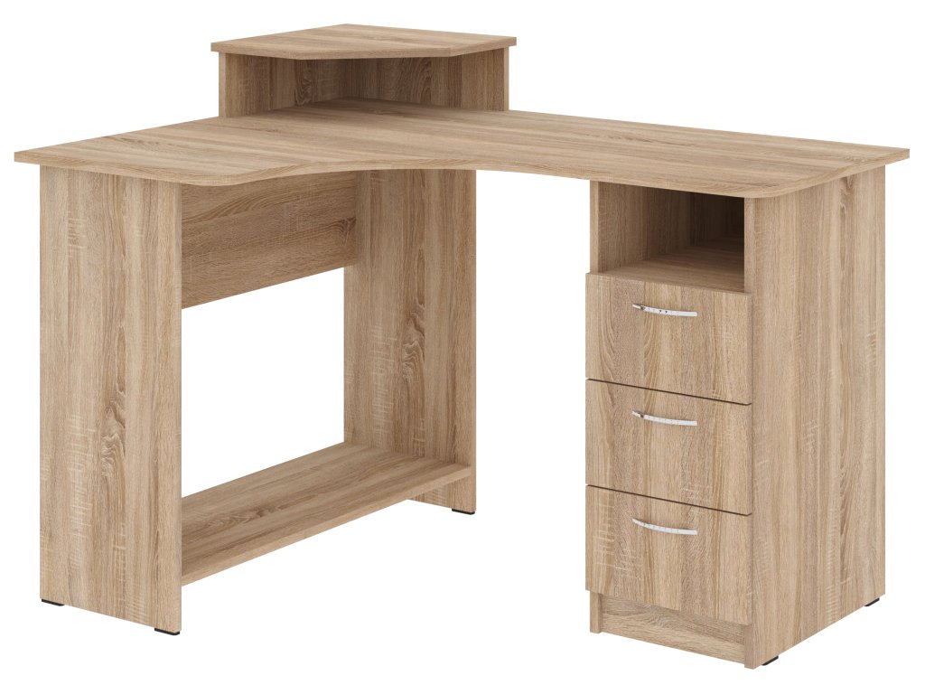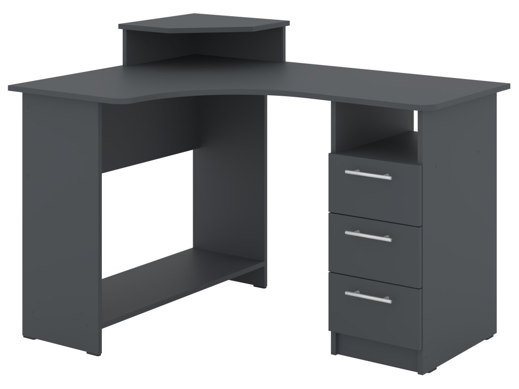 Rohový psací stůl KOMPAKT se zásuvkami je ideální volbou pro každou domácnost či kancelář, kde je kladen důraz na efektivitu a úsporu prostoru. Tento praktický stůl nabízí dostatek místa pro počítač, pracovní materiály i osobní věci. Je vybaven zásuvkami, které pomohou udržet vše potřebné po ruce a zároveň organizované.