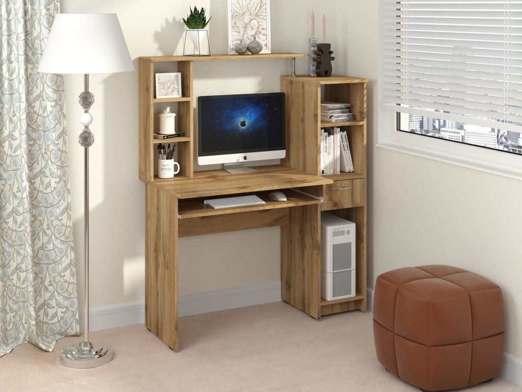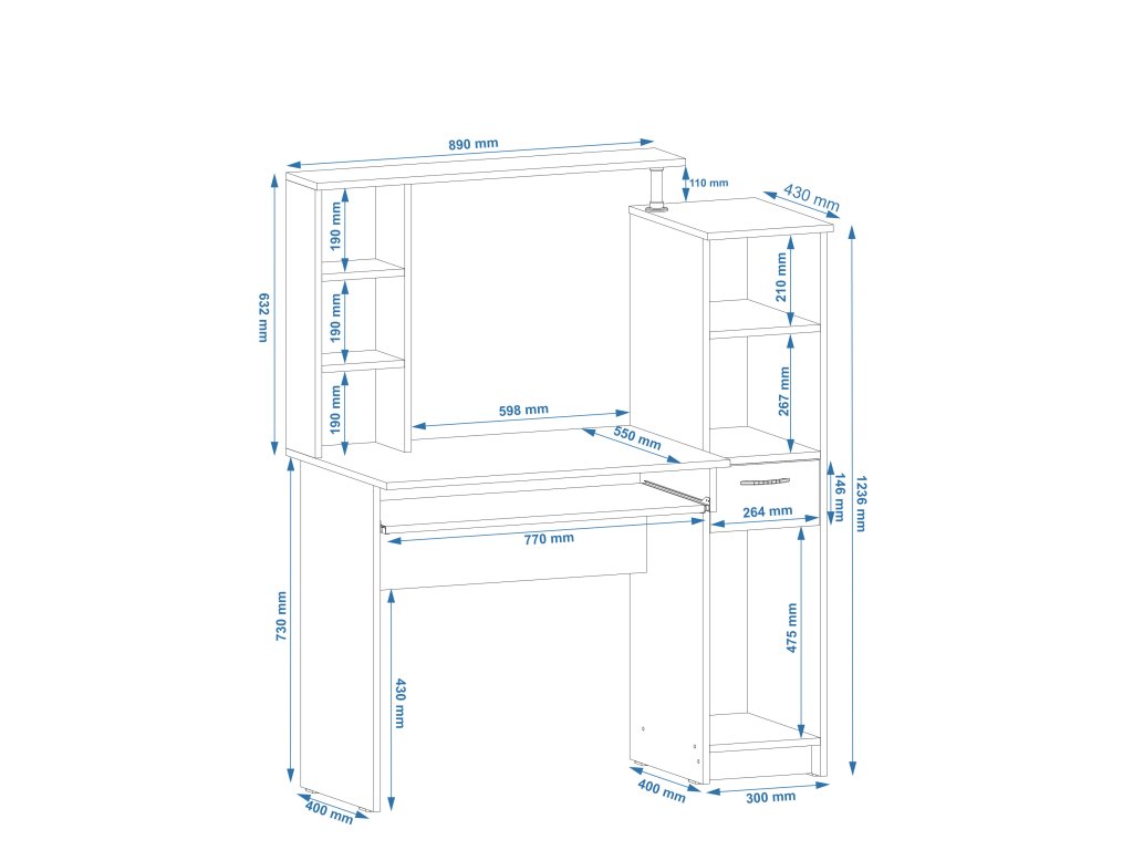 - Dostatek úložného prostoru: Nástavec a policové regály poskytují prostor pro uložení knih, dokumentů a dalších předmětů, což přispívá k lepší organizaci.