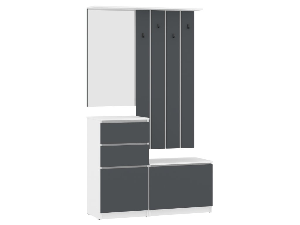 Předsíňová stěna NEW SYSTEM je ideálním řešením pro vaši předsíň, která spojí funkčnost a moderní design. Tato kompaktní, ale praktická sestava nabízí vše, co potřebujete pro úhledný a uspořádaný vstup do vašeho domova.