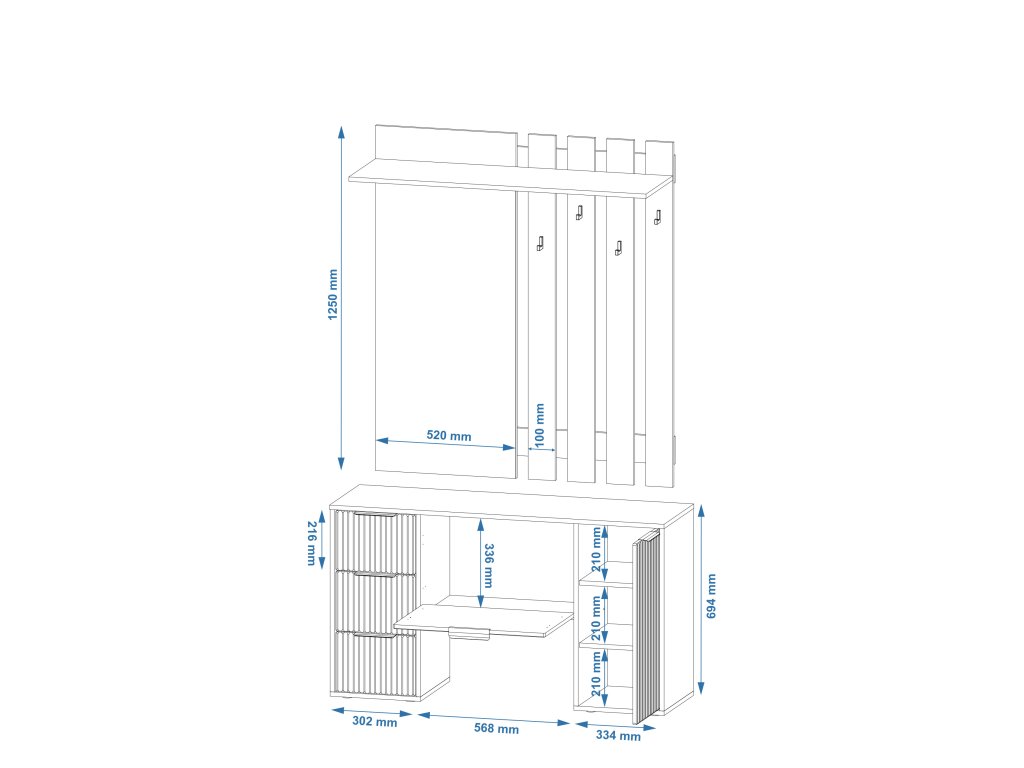 - Stylové a moderní zpracování: Elegantní design s kombinací zrcadla a praktických prvků.
