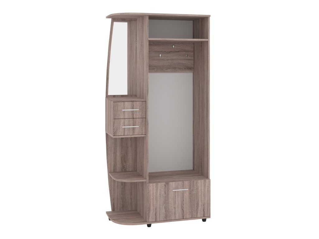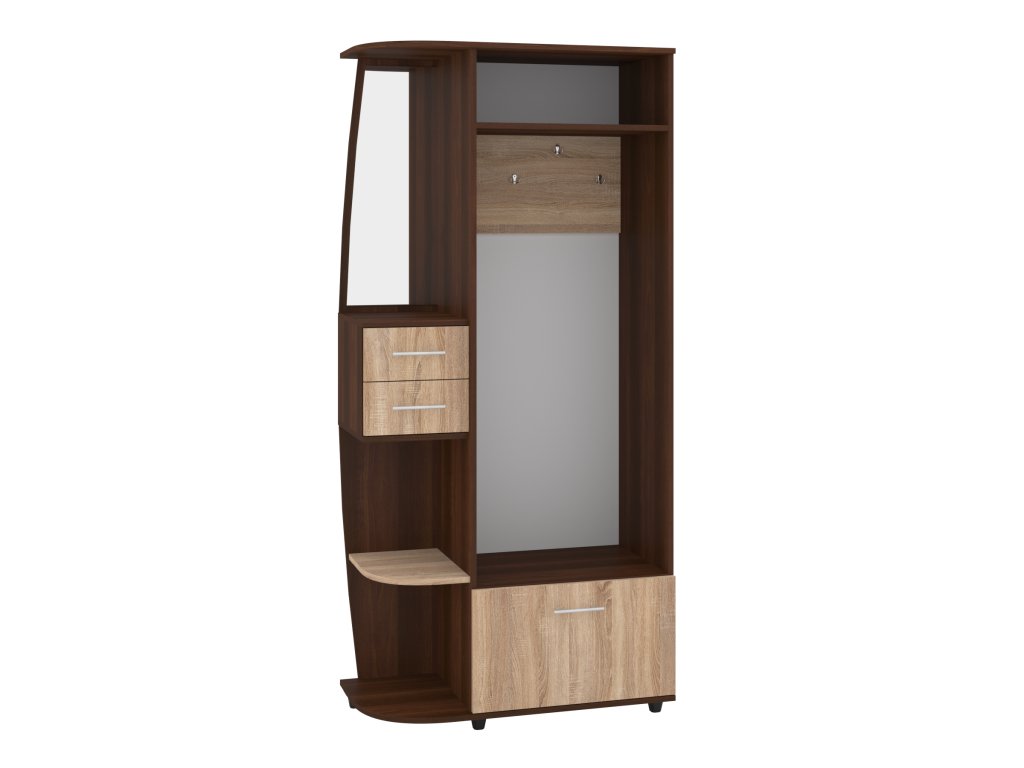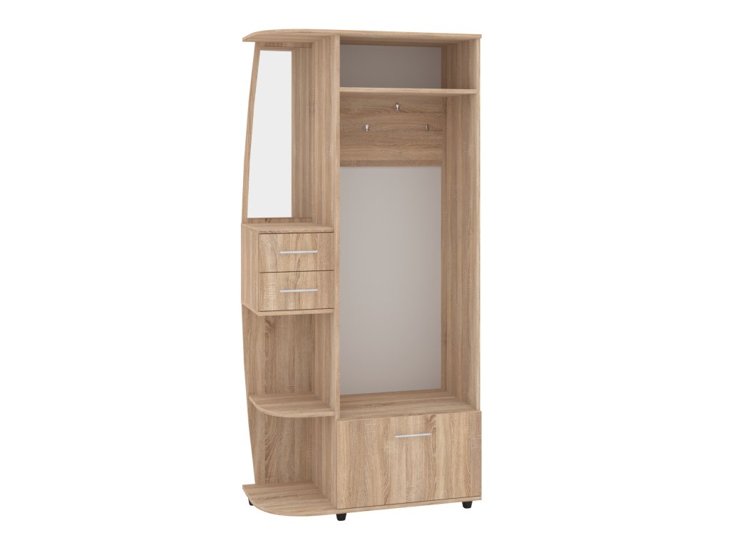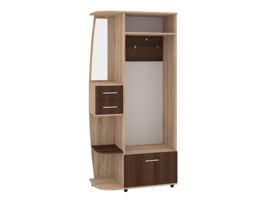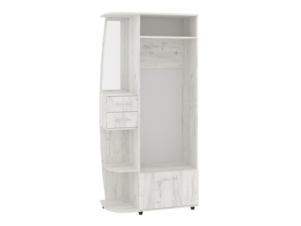 Předsíňová stěna BRIGANTINA s věšákem, zásuvkami a výklopným botníkem. Předsíňová stěna BRIGANTINA je praktický a elegantní kus nábytku, který skvěle doplní vaši předsíň. S její pomocí udržíte váš prostor vždy uklizený a organizovaný. Tento model je vybaven věšákem pro pohodlné zavěšení kabátů a bund, zásuvkami pro uschování drobností, a výklopným botníkem pro snadné a efektivní uložení obuvi. Díky kompaktním rozměrům (výška 193 cm, šířka 90 cm, hloubka 42,6 cm) je ideální pro menší i středně velké předsíně, kde nezabírá mnoho místa, ale poskytuje dostatek úložného prostoru.