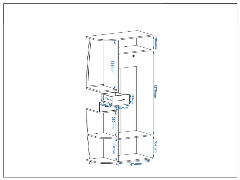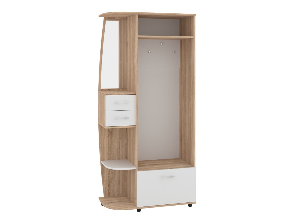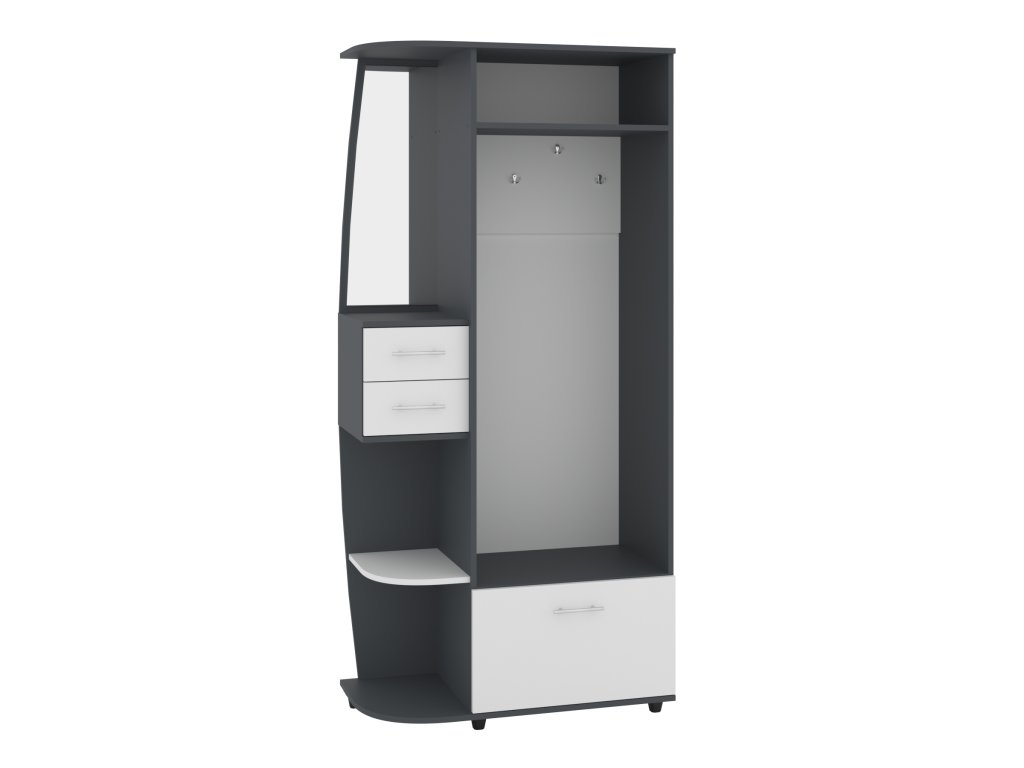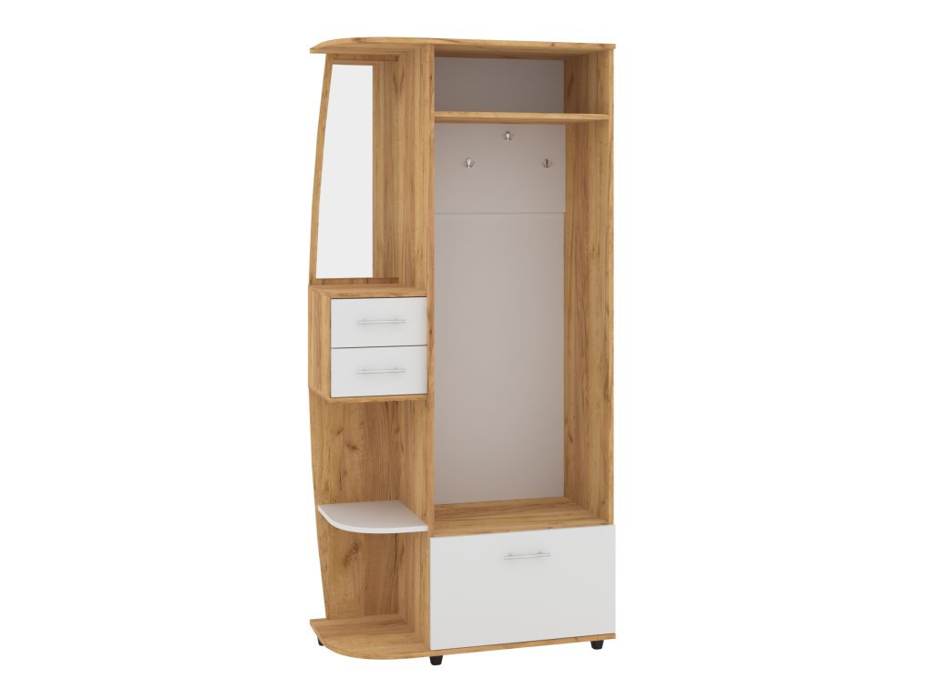 - Praktický design: Věšák, zásuvky a výklopný botník poskytují dostatek prostoru pro všechny vaše věci.