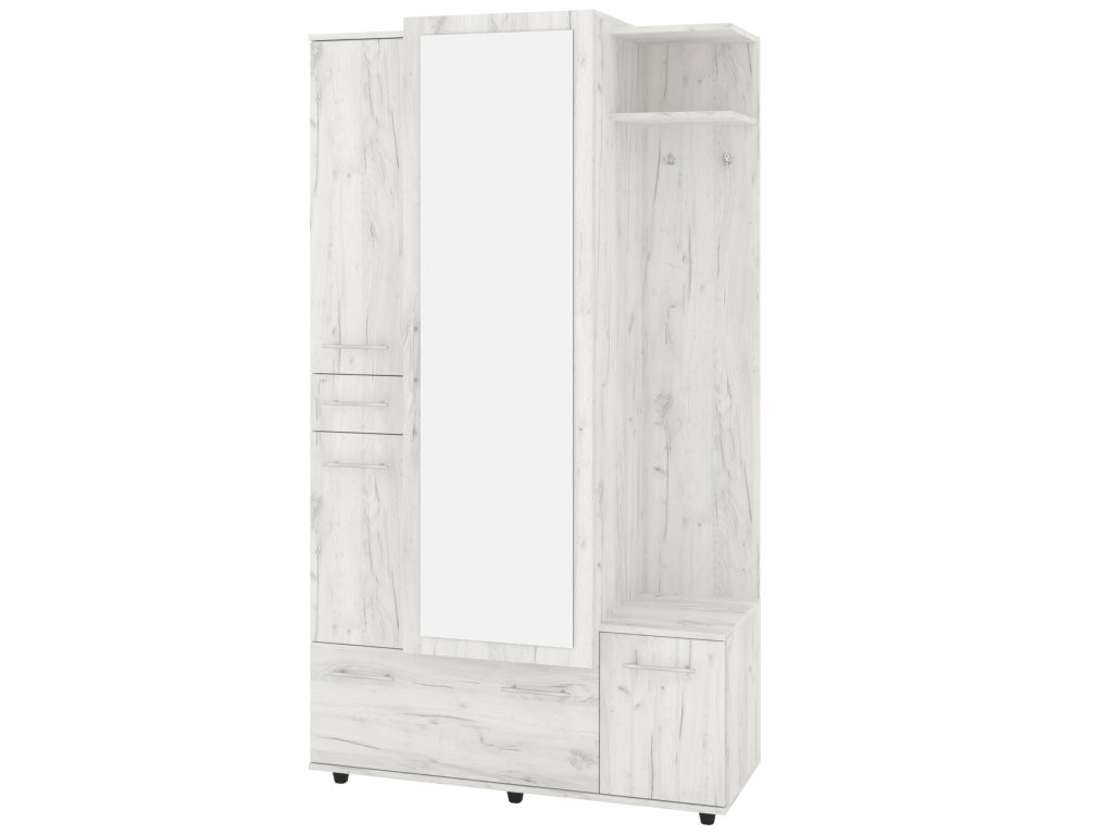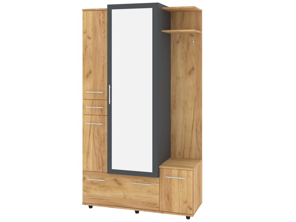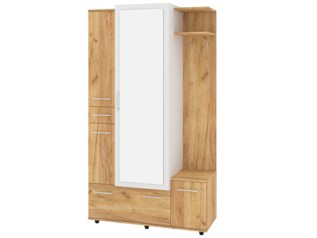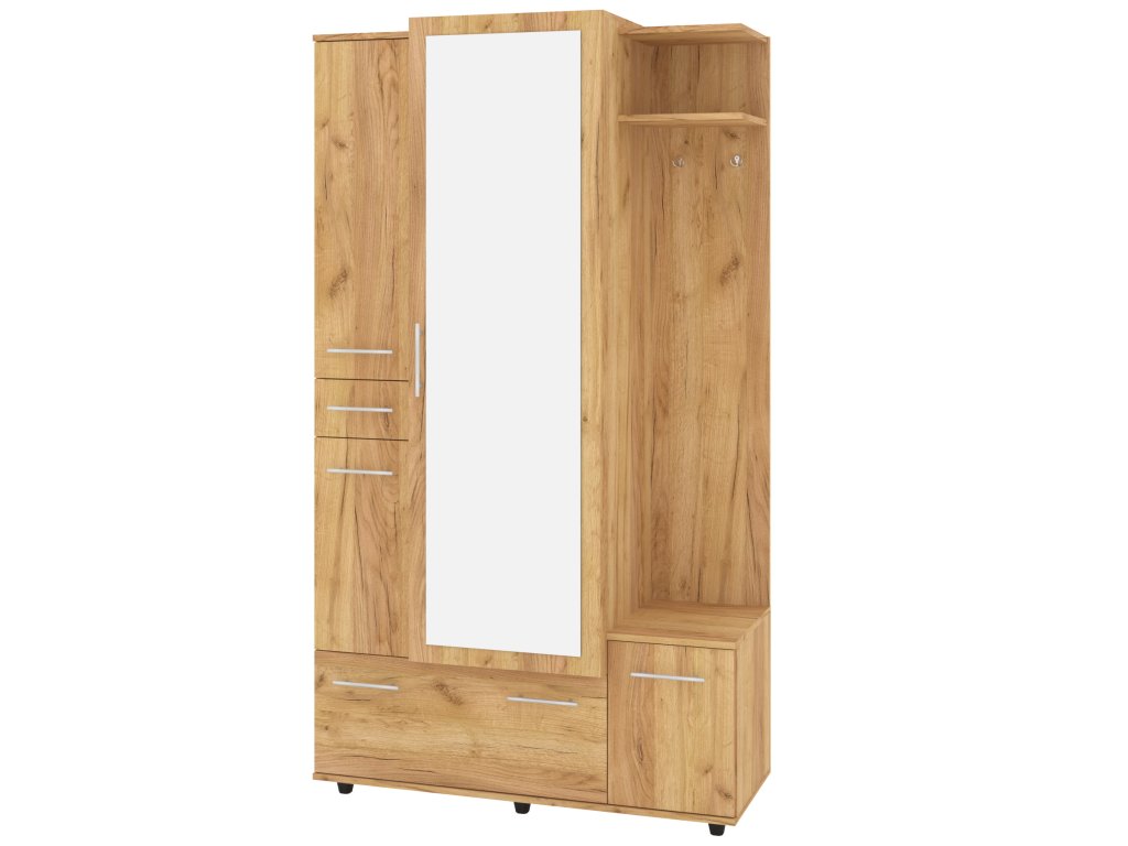 S velkým zrcadlem se můžete pohodlně připravit do každého dne, zatímco věšák vám umožní mít kabáty a bundy vždy po ruce. Praktická zásuvka poskytuje prostor pro drobnosti, které chcete mít vždy na dosah. Botník vám zajistí dostatek místa pro vaše boty a další obuv.