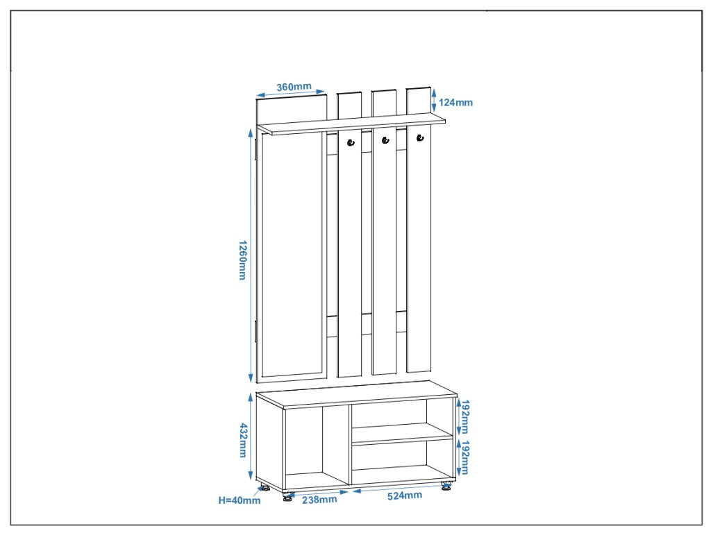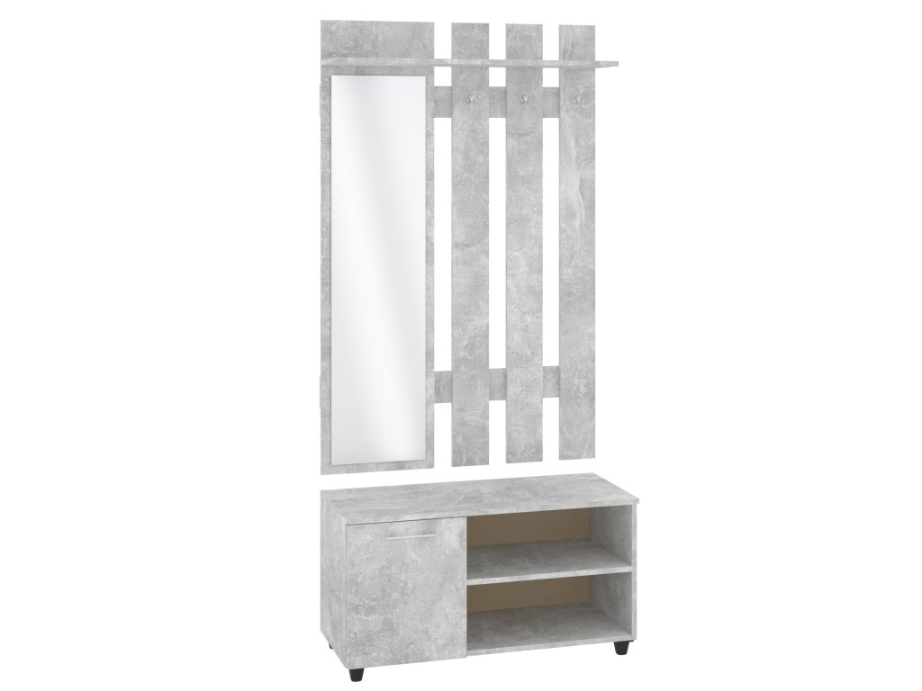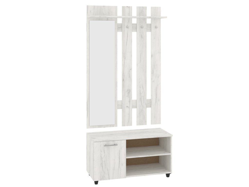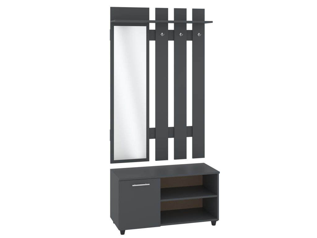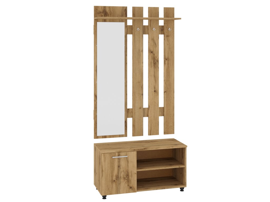 - Multifunkční: Kombinace zrcadla, věšáku, skříňky a botníku poskytuje efektivní a přehledné řešení pro vaši předsíň.