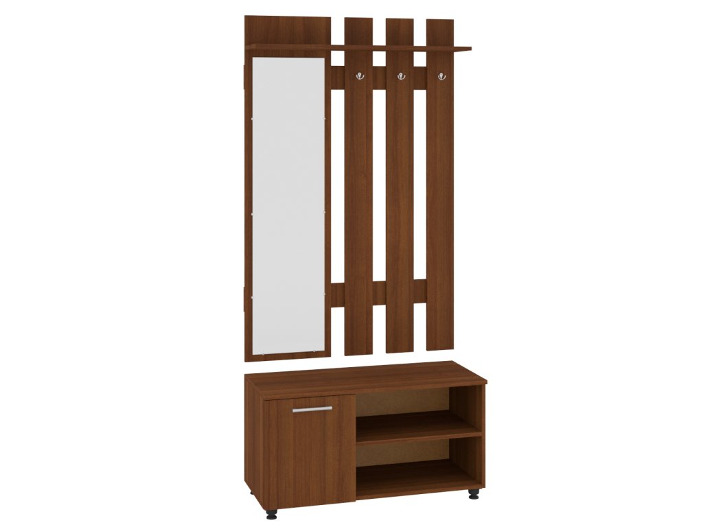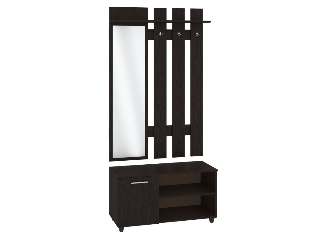Tato předsíňová stěna je navržena tak, aby vám usnadnila každodenní rutiny – zrcadlo pro rychlou kontrolu vzhledu, věšák pro zavěšení kabátů a tašek, botník pro pohodlné uložení obuvi a skříňka pro ukládání drobností a klíčů. Vše je kvalitně zpracováno, což zaručuje dlouhou životnost a odolnost.