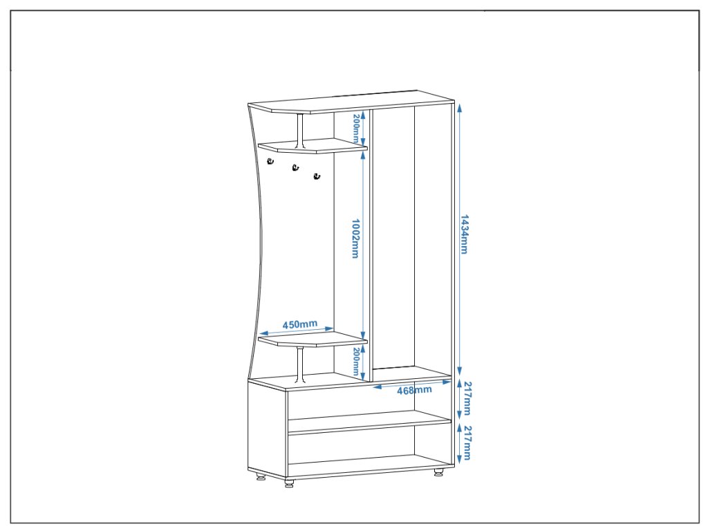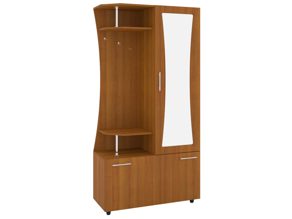 - Úspora místa – díky kompaktním rozměrům (100 cm šířka, 43 cm hloubka) je ideální do menších i větších předsíní.