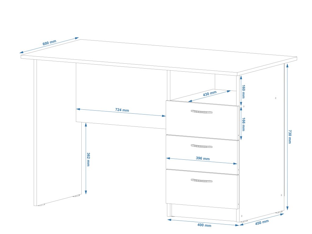 Elegantní a funkční psací stůl je ideálním řešením pro každý pracovní prostor. Vyrobený z kvalitního materiálu, nabízí dostatek místa pro pohodlné psaní, práci na počítači i organizaci pracovních pomůcek. Design stolu je moderní a nadčasový, což ho činí snadno kombinovatelným s různými interiérovými styly. Robustní konstrukce a kvalitní povrchová úprava zaručují dlouhou životnost a snadnou údržbu.