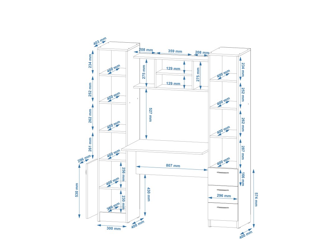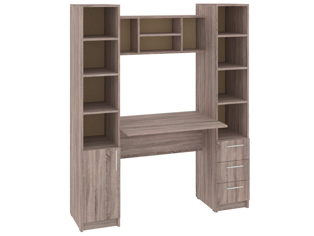 Psací stůl Grand s policovými regály po stranách je perfektní volbou pro každého, kdo hledá stylové a funkční pracovní místo. Tento moderní stůl nabízí dostatek prostoru pro vaši pracovní plochu a zároveň poskytuje praktické úložné možnosti díky vestavěným policovým regálům na obou stranách.
