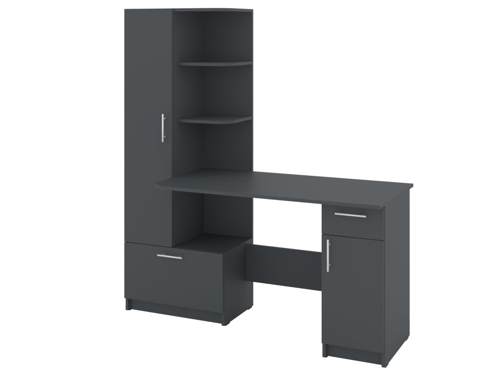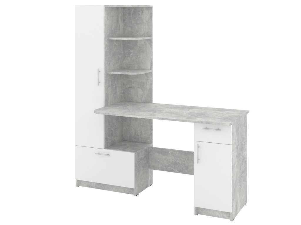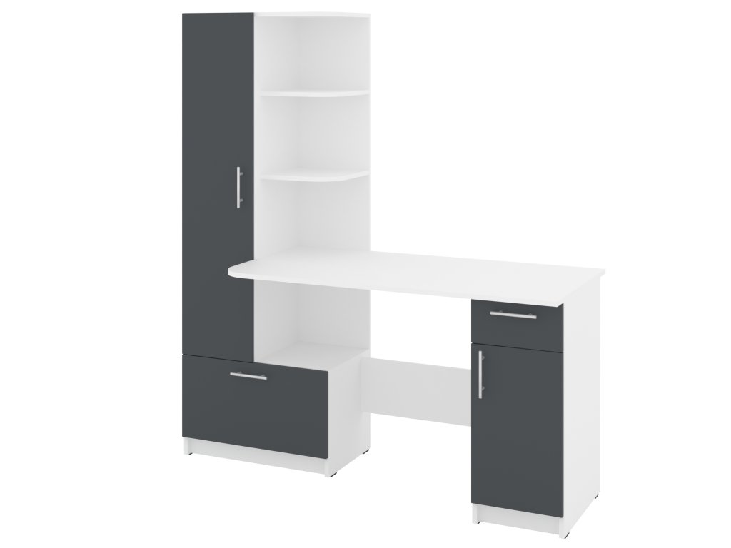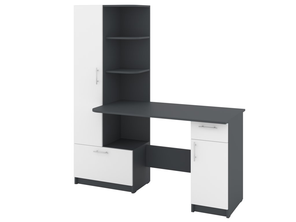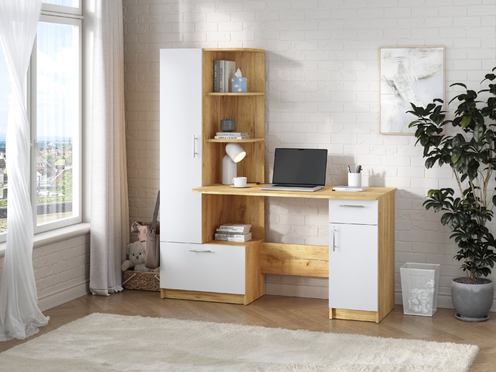 Prostor pro práci i úložný prostor: Stůl s integrovaným regálem a skříní nabízí dostatek místa pro vaši pracovní plochu a zároveň pomůže organizovat vaše kancelářské potřeby.