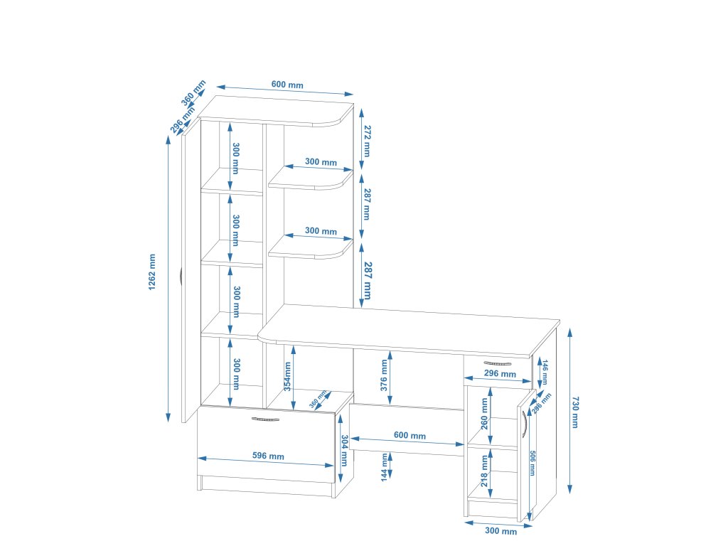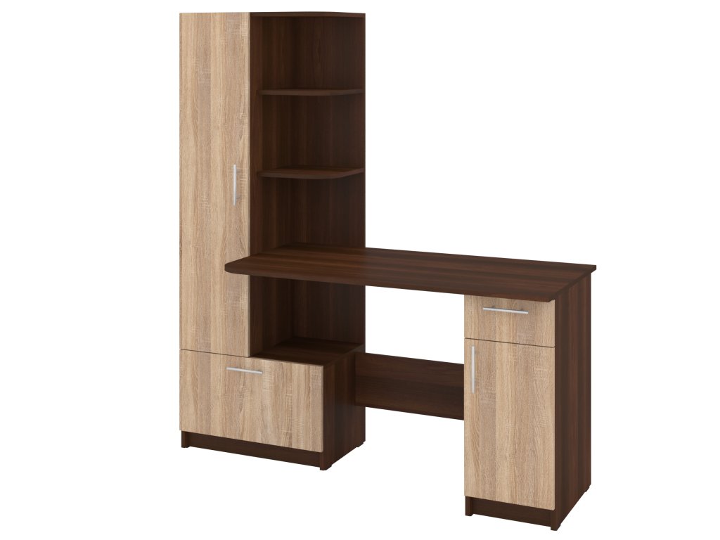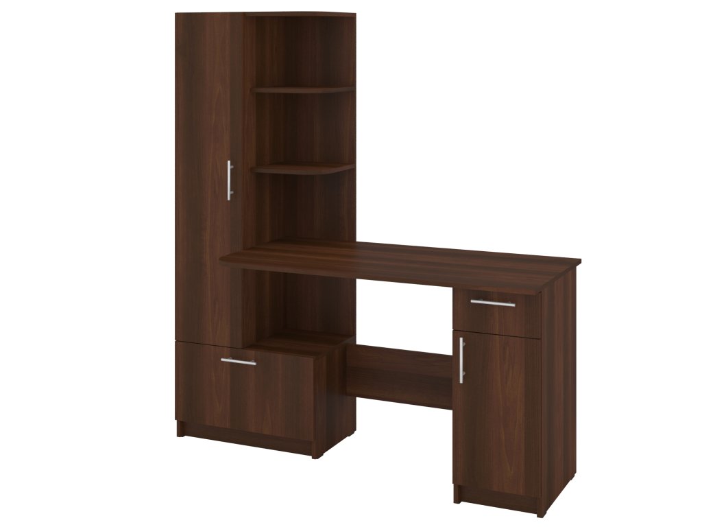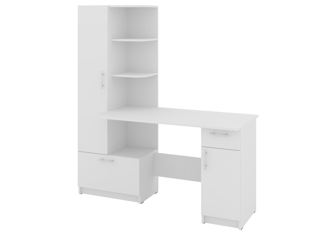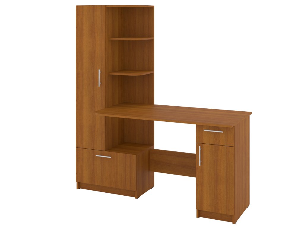 Prostor pro práci i úložný prostor: Stůl s integrovaným regálem a skříní nabízí dostatek místa pro vaši pracovní plochu a zároveň pomůže organizovat vaše kancelářské potřeby.