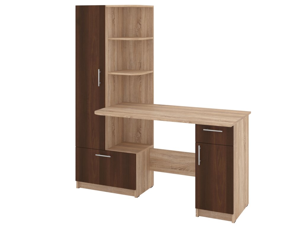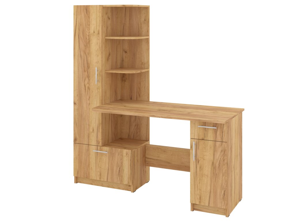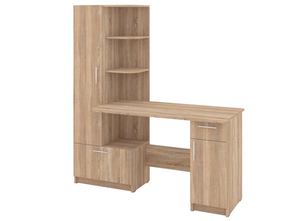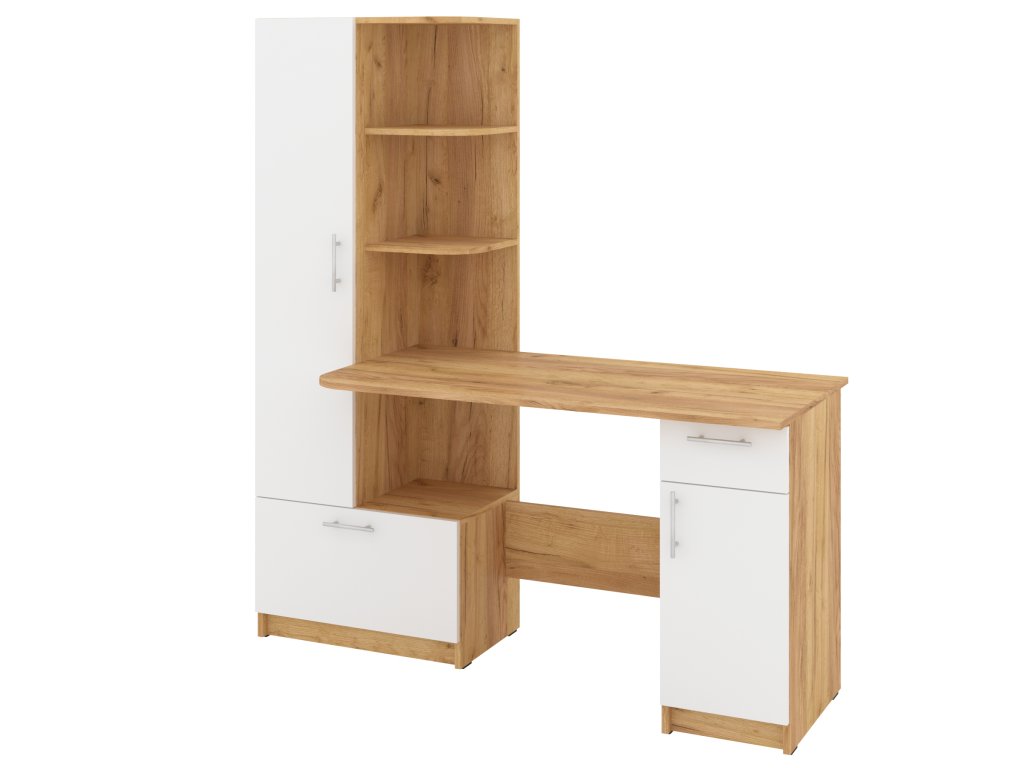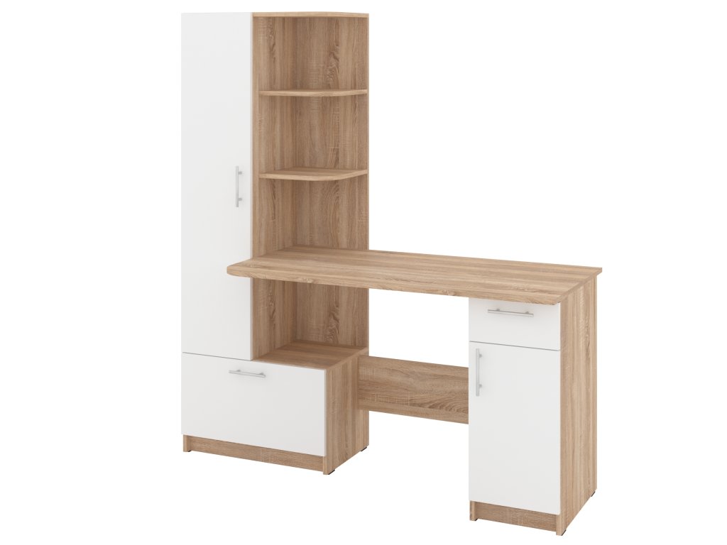 Psací stůl SANS se skříní a policovým regálem je ideálním řešením pro ty, kteří hledají kombinaci funkčnosti a stylového designu do své pracovny nebo domácí kanceláře. Tento elegantní stůl nabízí dostatek prostoru pro vaše pracovní potřeby a zároveň poskytuje úložný prostor pro dokumenty, knihy nebo kancelářské potřeby.