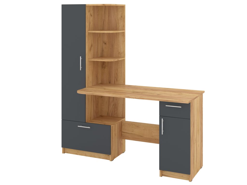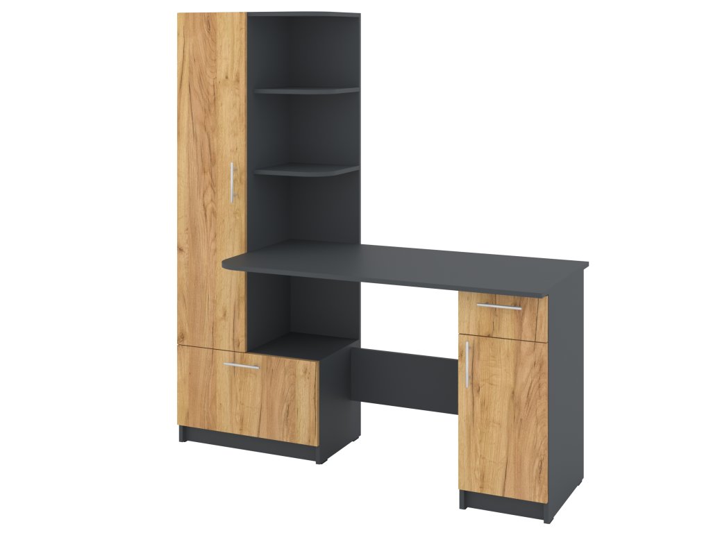 Psací stůl SANS se skříní a policovým regálem je ideálním řešením pro ty, kteří hledají kombinaci funkčnosti a stylového designu do své pracovny nebo domácí kanceláře. Tento elegantní stůl nabízí dostatek prostoru pro vaše pracovní potřeby a zároveň poskytuje úložný prostor pro dokumenty, knihy nebo kancelářské potřeby. S přehledně uspořádaným policovým regálem a skříní si budete moci snadno udržet pořádek a mít vše potřebné na dosah ruky. Kombinace moderního vzhledu a praktického uspořádání vám umožní pracovat efektivně a v pohodlí.