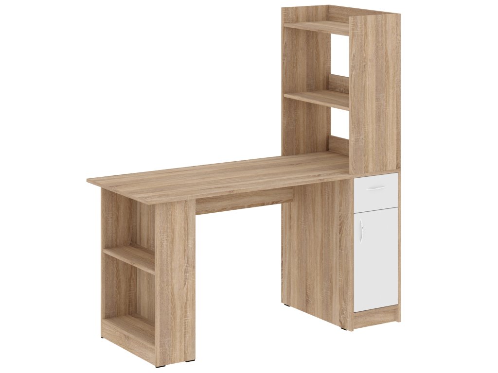 Psací stůl STILUS se zásuvkou, skříňkou a policovými regály - Ideální volba pro vaši domácí kancelář