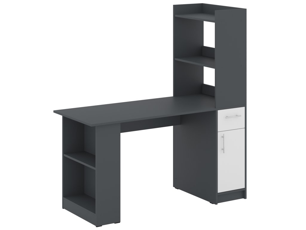 Psací stůl STILUS se zásuvkou, skříňkou a policovými regály - Ideální volba pro vaši domácí kancelář. Hledáte kvalitní a praktický psací stůl, který splní všechny vaše požadavky na úložný prostor a zároveň přinese moderní design do vaší pracovny? Psací stůl STILUS je ideální volbou pro všechny, kteří potřebují prostor na psaní, práci s počítačem i organizování drobných předmětů.