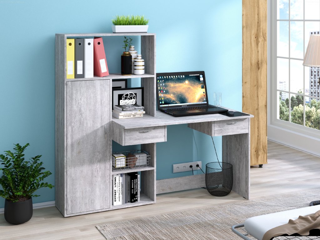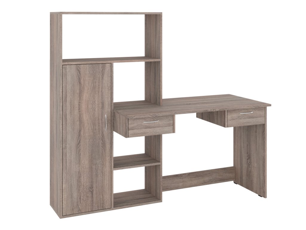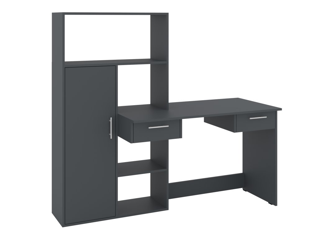 Psací stůl Tornado je ideální volbou pro každého, kdo hledá kombinaci moderního designu, funkčnosti a praktičnosti. Tento stůl nabízí dostatek prostoru pro práci i ukládání věcí, díky integrovaným zásuvkám, policovému regálu a skříňce. Jeho elegantní vzhled se hodí do každého interiéru – ať už je to domácí kancelář, studentský pokoj nebo pracovnu. Stůl je vyroben z kvalitních materiálů, které zajišťují dlouhou životnost a odolnost.