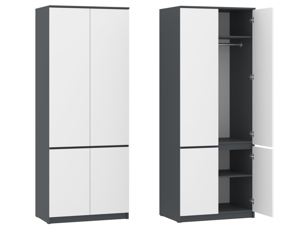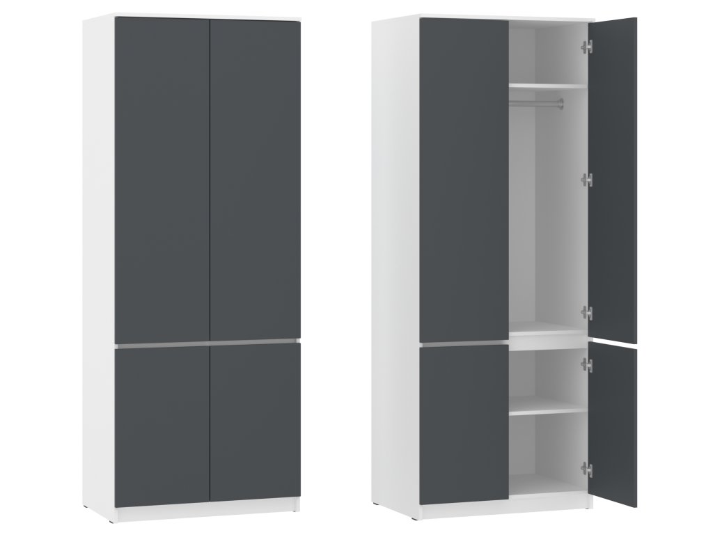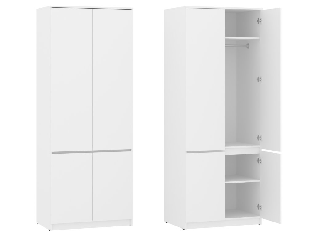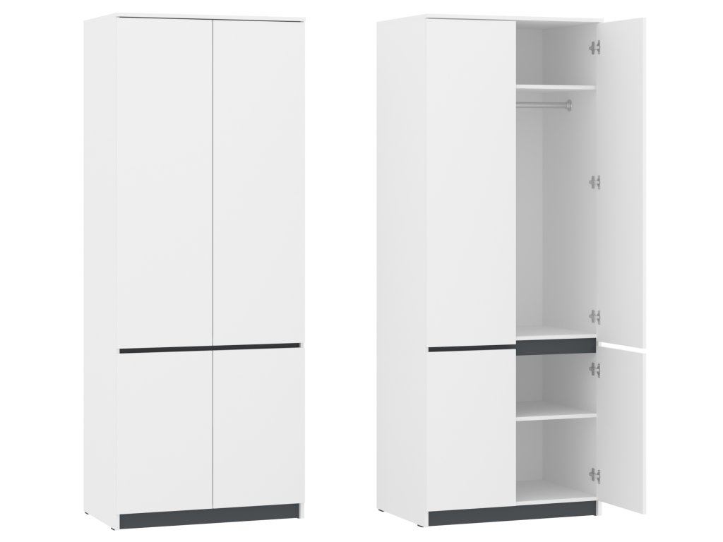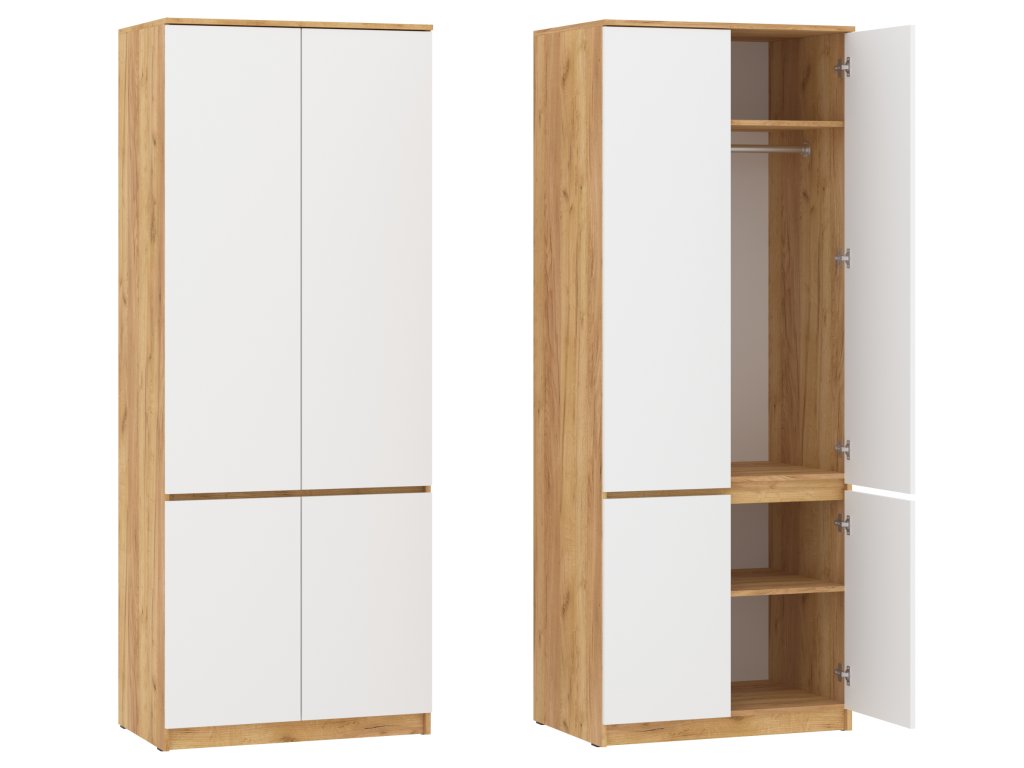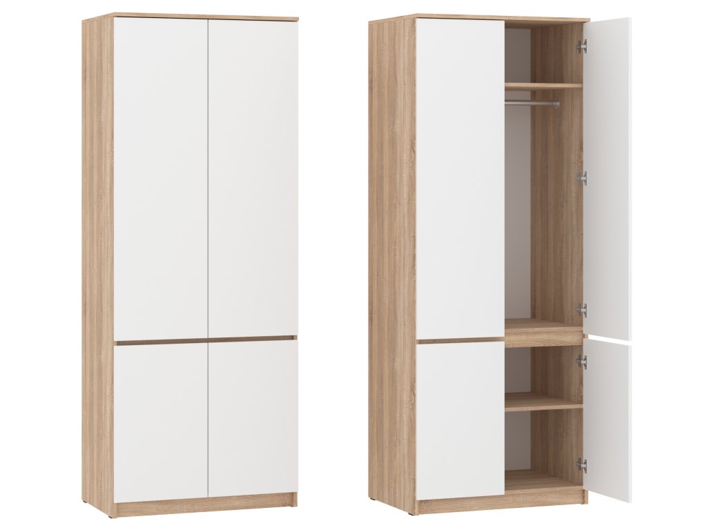 Šatní dvoudvéřová skříň NEW SYSTEM je perfektní volbou pro ty, kteří hledají kvalitní a praktické řešení pro úložný prostor. Díky rozměrům 207 cm na výšku, 80 cm na šířku a 54 cm na hloubku je ideální do středně velkých prostor, kde efektivně využijete každý centimetr. Otvírací dveře umožňují snadný a pohodlný přístup k obsahu skříně.