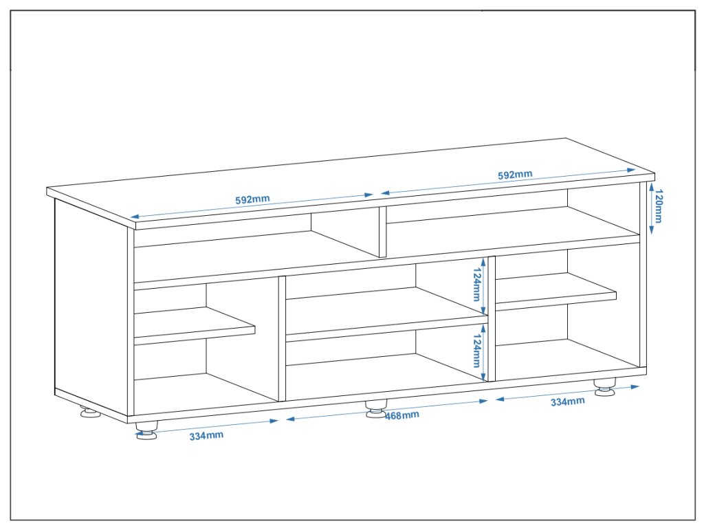 - Prostor pro uspořádání – Dostatek úložného prostoru pro televizní zařízení, herní konzole, a další elektroniku.