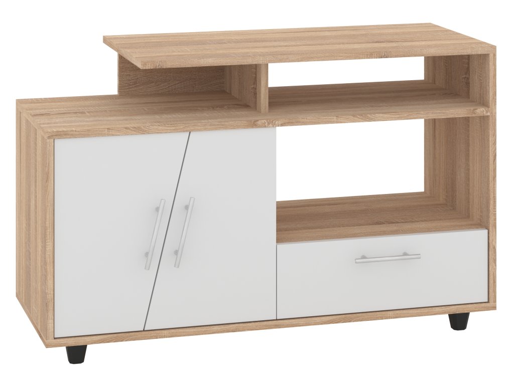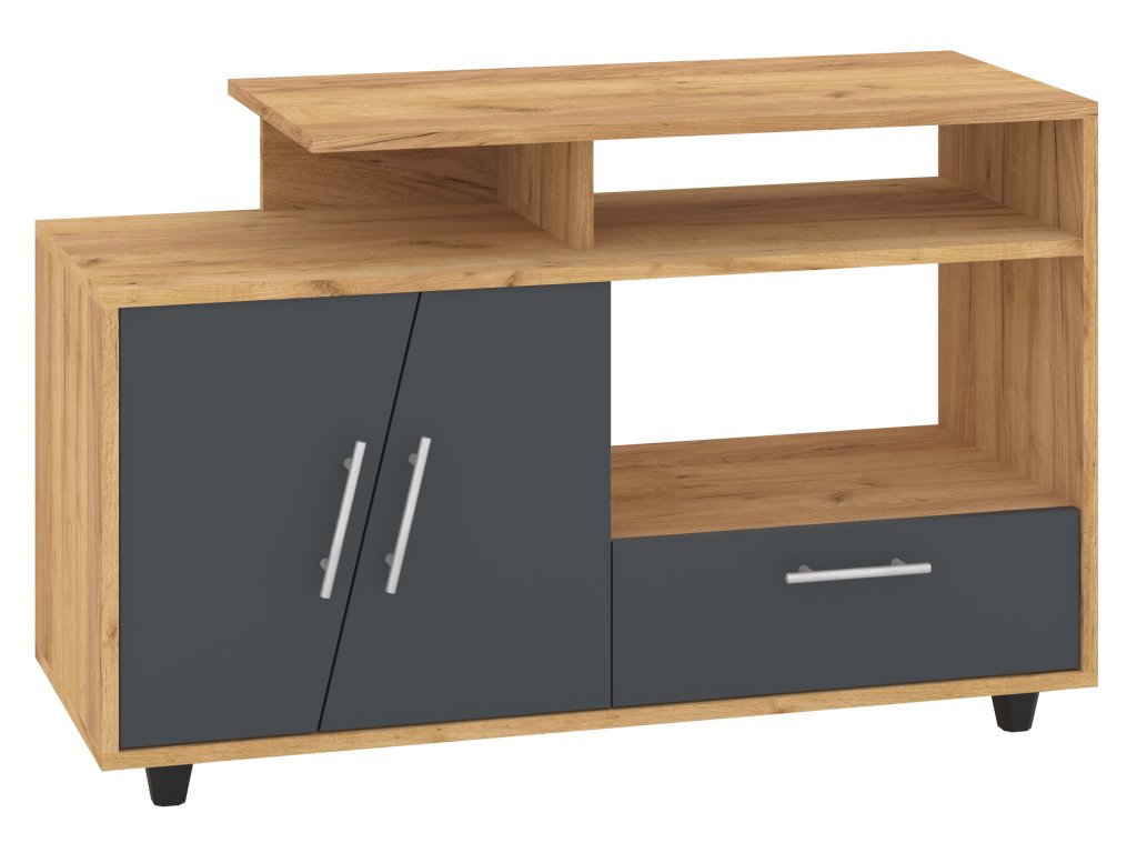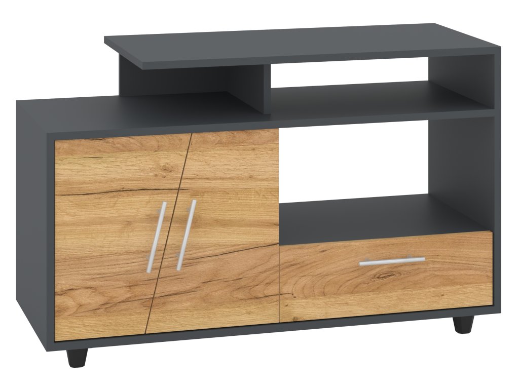 Stylový TV stolek Rio je ideálním doplňkem pro vaši obývací místnost. Nabízí dostatek úložného prostoru díky kombinaci dvířek, zásuvky a otevřené police. Tento elegantní kousek nábytku se skvěle hodí k moderním interiérům, ale i k těm, které mají klasický nádech. Stolek je vyroben z kvalitního materiálu s důrazem na detail, což zajišťuje dlouhou životnost a odolnost. Prostorná zásuvka vám umožní schovat ovladače, kabely a další drobnosti, zatímco otevřená police poskytuje místo pro vaše elektronické zařízení nebo dekorační předměty.
