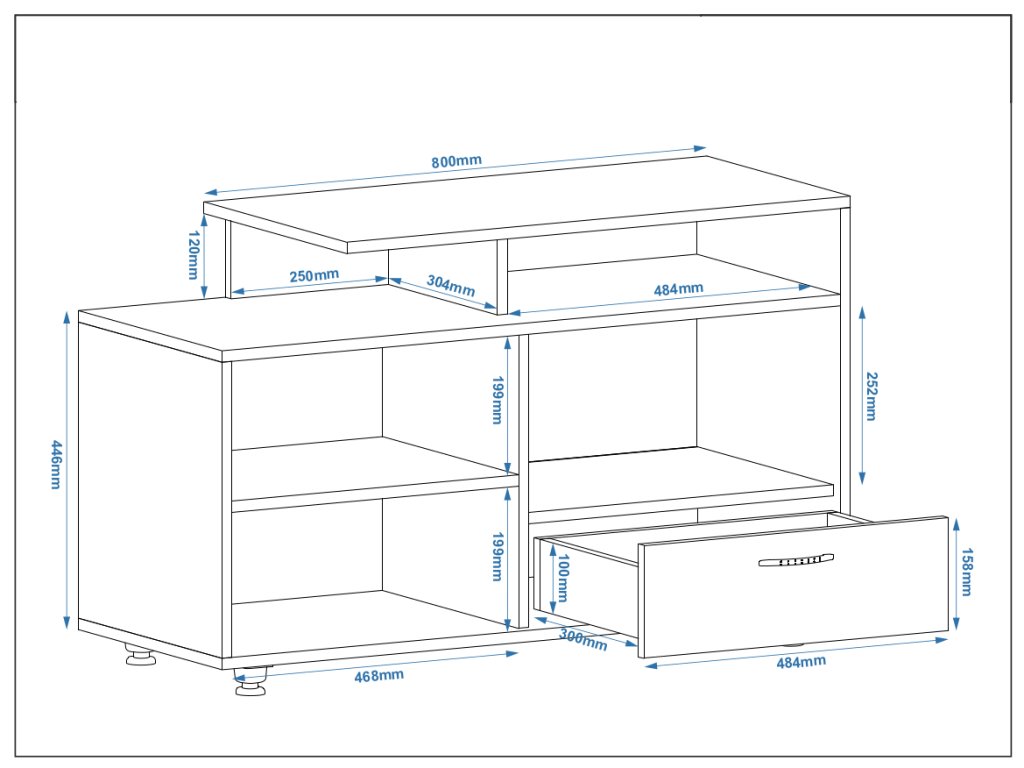 - Praktický úložný prostor – dvířka, zásuvka a otevřená police poskytují dostatek místa pro všechny vaše věci.