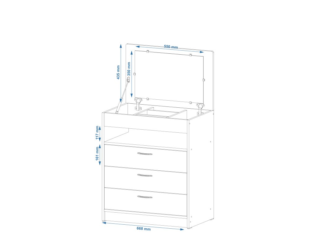 Díky kvalitnímu zpracování a elegantnímu vzhledu bude tento toaletní stolek krásným doplňkem do vašeho interiéru, který zároveň šetří prostor a zjednodušuje každodenní používání.