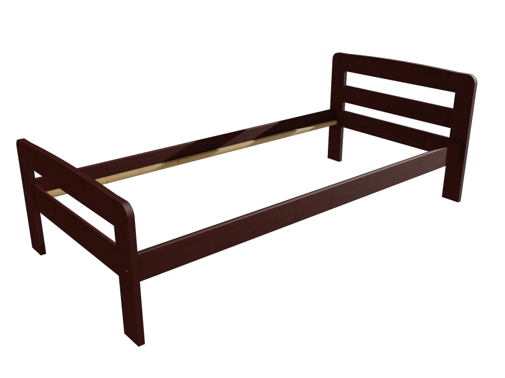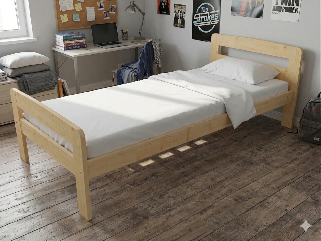 Dřevěná postel 100x200 cm z masivní borovice – VMK8C nabízí pevnost, komfort a přírodní eleganci. Je ideální pro menší ložnice, studentské pokoje nebo hostinské místnosti, kde je důležitá stabilita a dlouhá životnost. Postel je dodávána včetně laťového roštu
