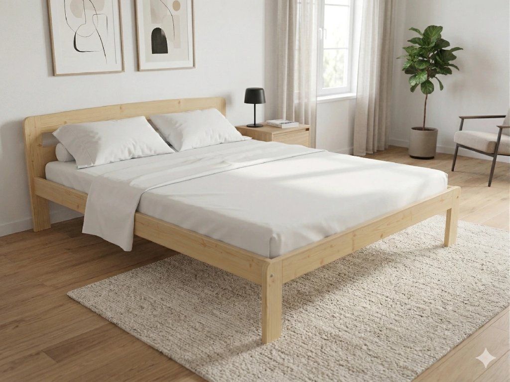 Dřevěná postel 140x200 cm z masivní borovice – VMK8A nabízí pevnost, komfort a přírodní eleganci. Je ideální pro menší ložnice, studentské pokoje nebo hostinské místnosti, kde je důležitá stabilita a dlouhá životnost. Postel je dodávána včetně laťového roštu