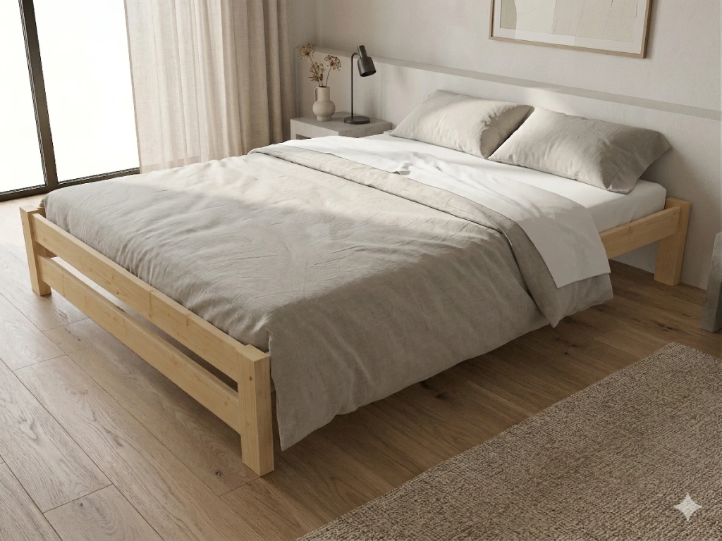 Dřevěná postel 160x200 cm z masivní borovice – VMK14B nabízí pevnost, komfort a přírodní eleganci. Je ideální pro menší ložnice, studentské pokoje nebo hostinské místnosti, kde je důležitá stabilita a dlouhá životnost. Postel je dodávána včetně laťového roštu