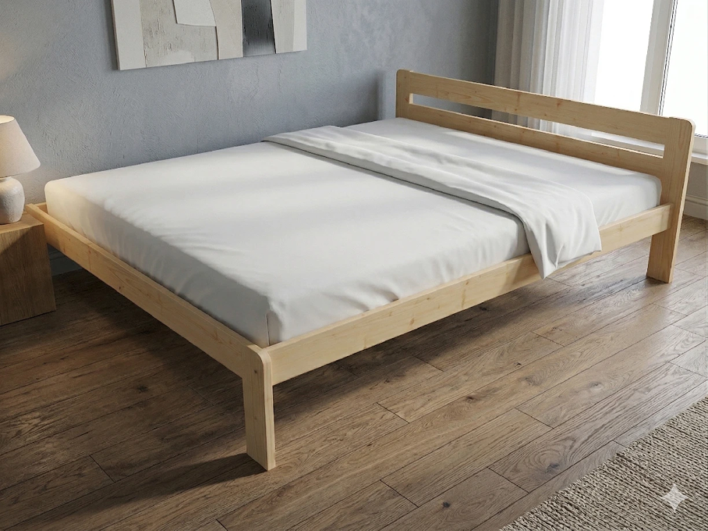 Dřevěná postel 200x200 cm z masivní borovice – VMK2A nabízí pevnost, komfort a přírodní eleganci. Je ideální pro menší ložnice, studentské pokoje nebo hostinské místnosti, kde je důležitá stabilita a dlouhá životnost. Postel je dodávána včetně laťového roštu