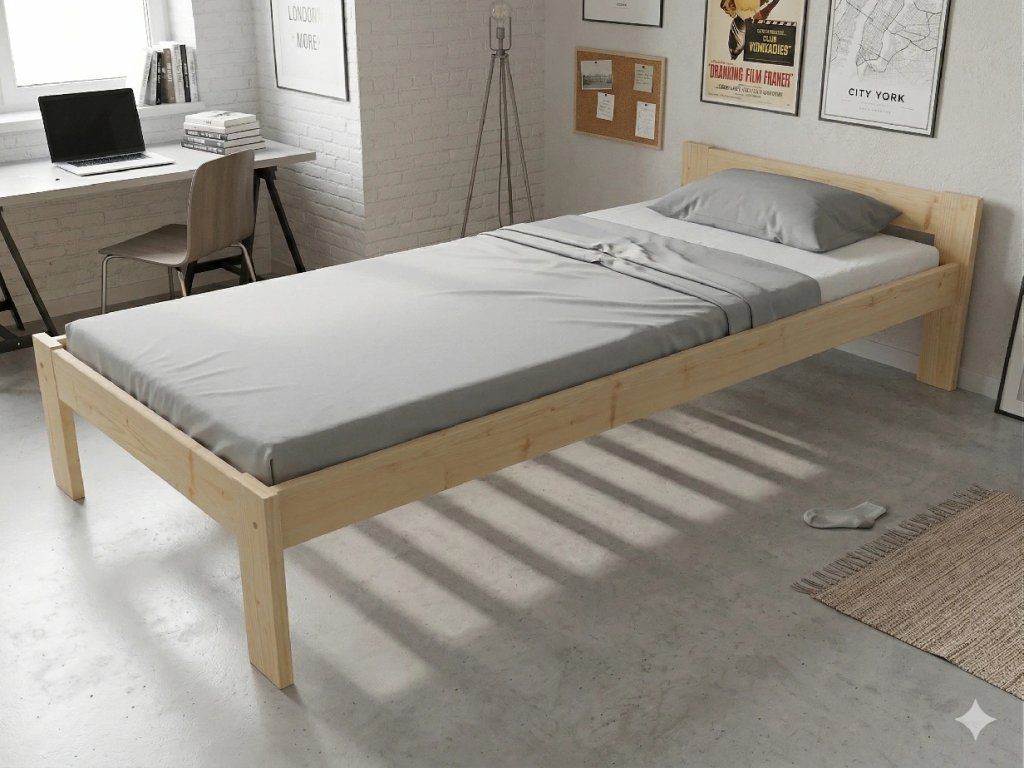 Dřevěná postel 80x200 cm z masivní borovice – VMK6A nabízí pevnost, komfort a přírodní eleganci. Je ideální pro menší ložnice, studentské pokoje nebo hostinské místnosti, kde je důležitá stabilita a dlouhá životnost. Postel je dodávána včetně laťového roštu