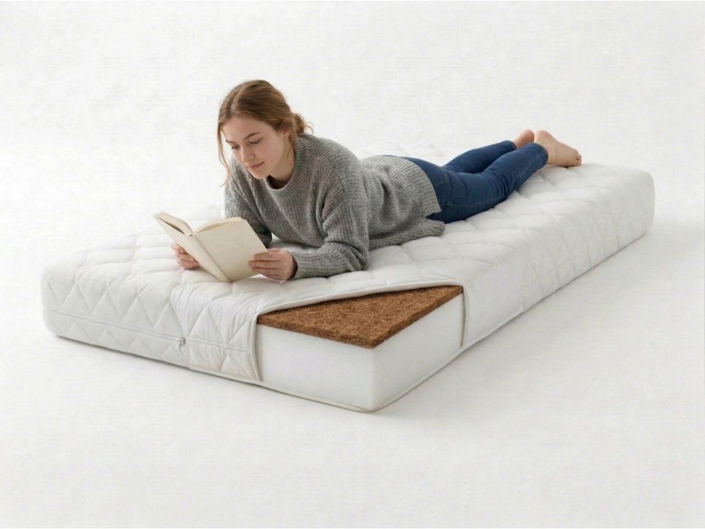 - kokosová vrstva zajišťuje pevnou oporu, lepší ventilaci a hygienu