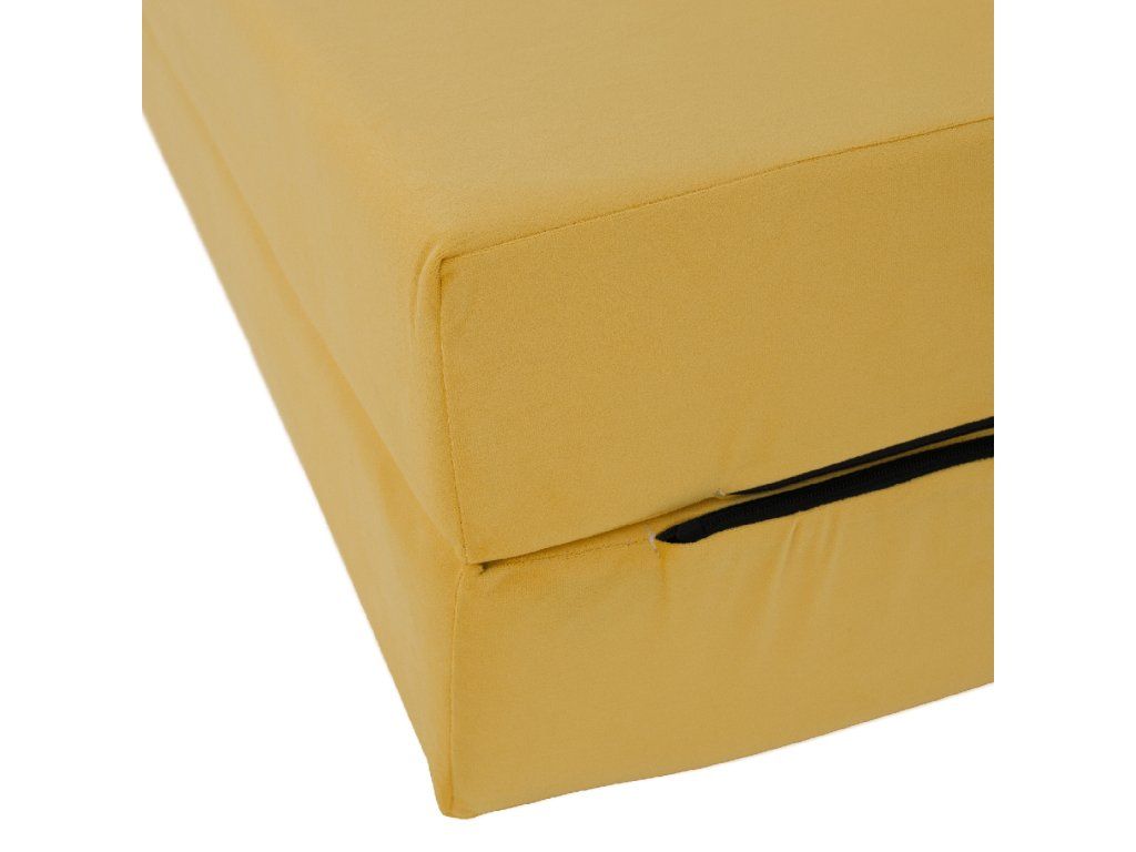 Skládací matrace AIRELL v zářivé žluté barvě je stylový a funkční doplněk do každého interiéru. Díky chytrému 2v1 provedení slouží jako pohodlné křeslo i plnohodnotné lůžko pro hosty. Rozměry ve složeném stavu jsou 120x82x52 cm, po rozložení vznikne komfortní plocha na spaní o velikosti 120x200 cm.
